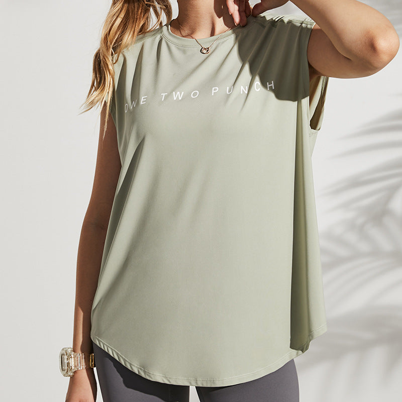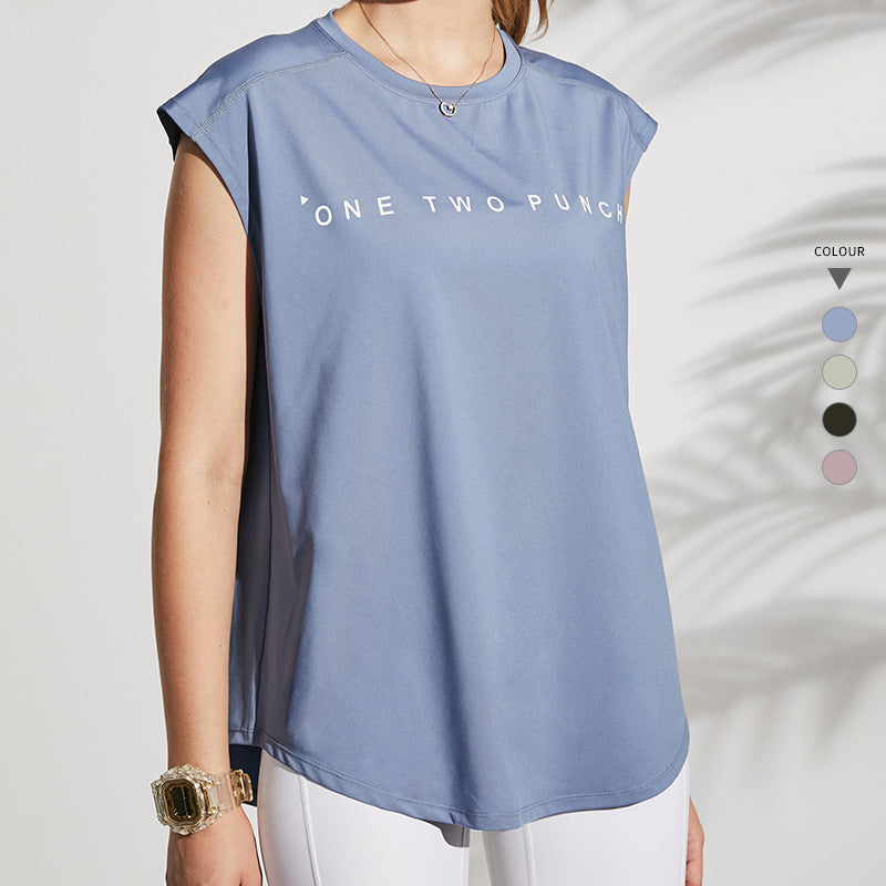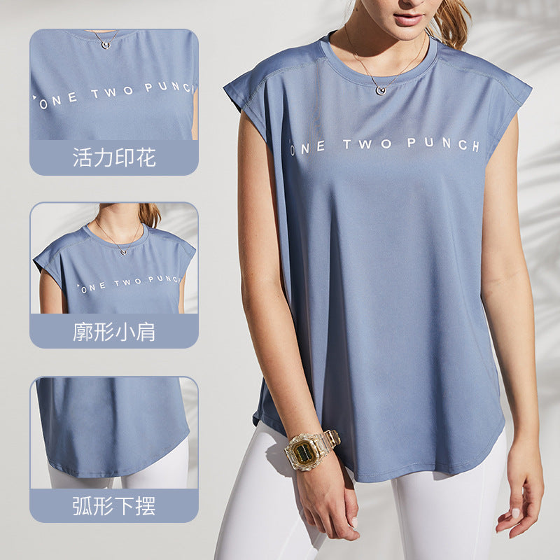 Sleeveless English printing loose sports vest women's summer net celebrity fitness running sports yoga clothes women