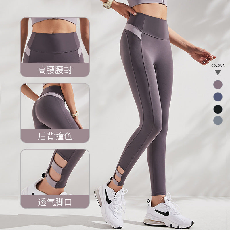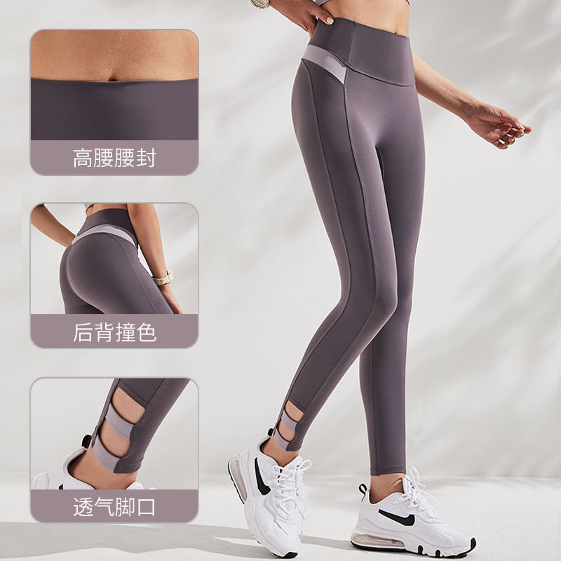 05/2025 Tight yoga pants, crossed high-waisted color-blocking tight pants, women's sports running fitness pants 9253