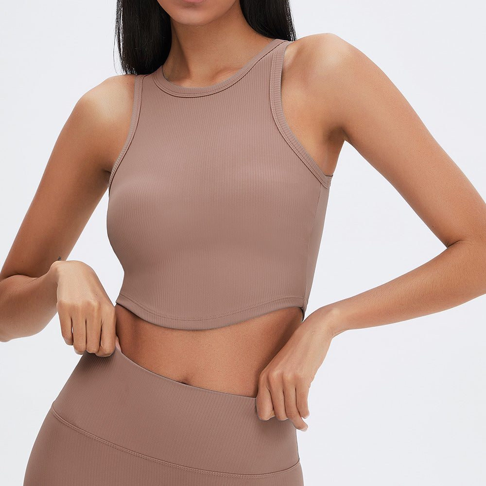 Spot new yoga vest female nude ribbed fitness shock-proof sports underwear high-strength yoga bra
