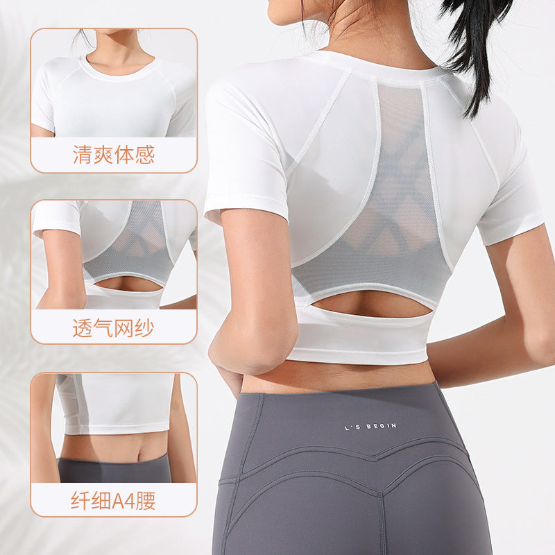 beauty back sexy sports short-sleeved top women's short fitness yoga clothes