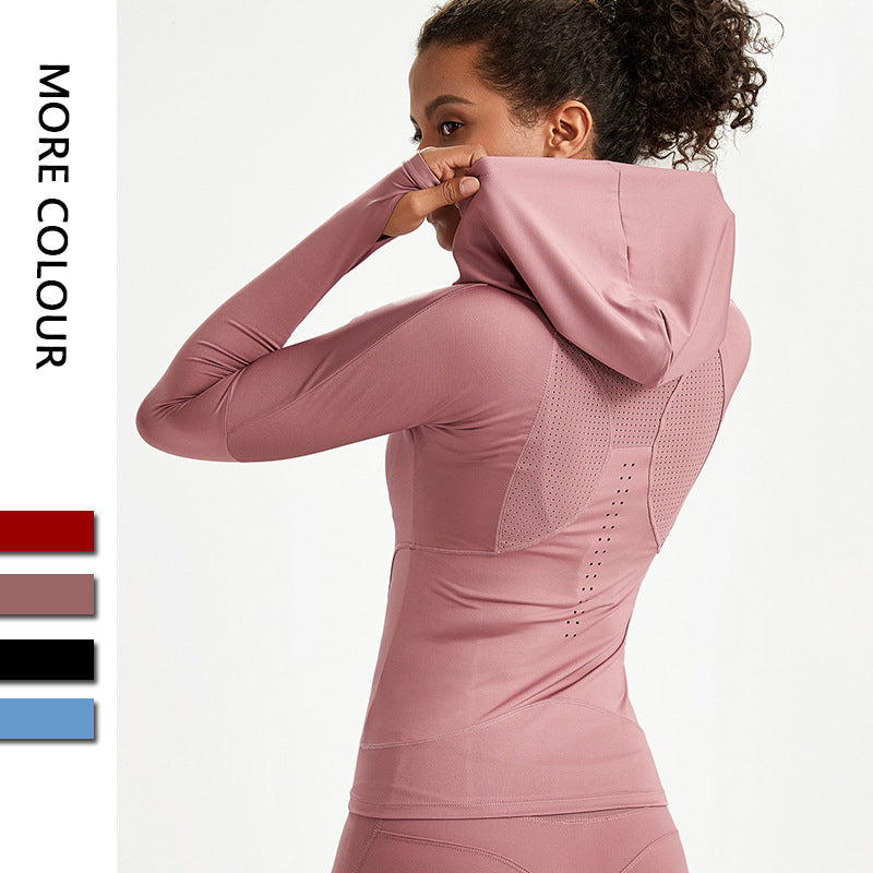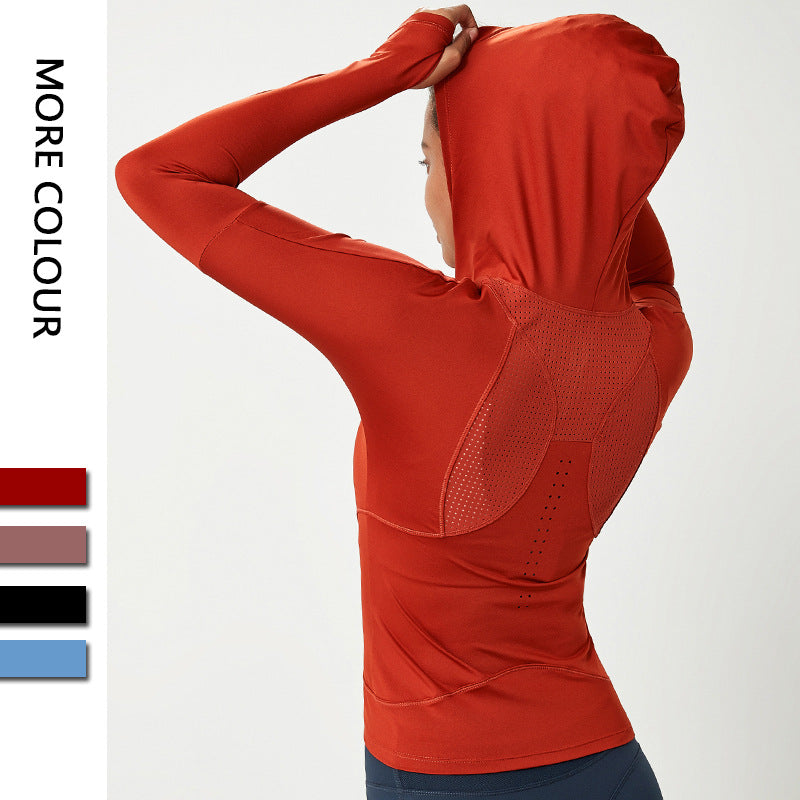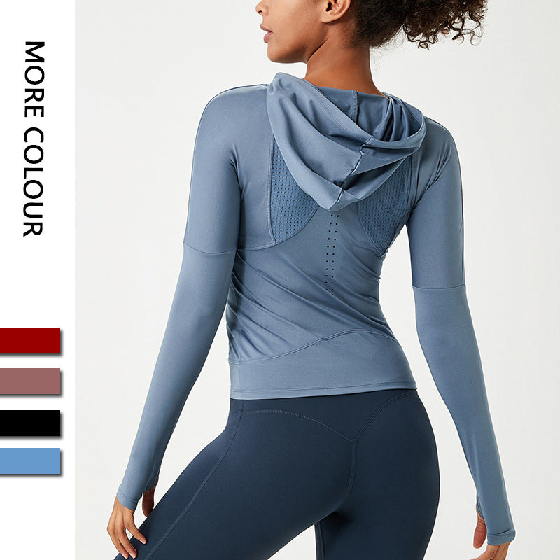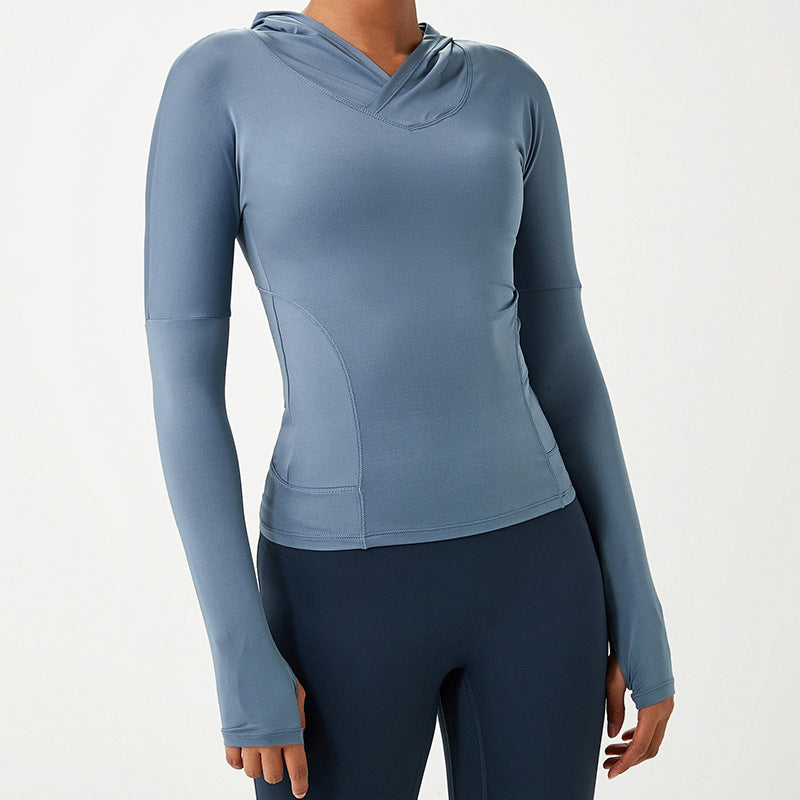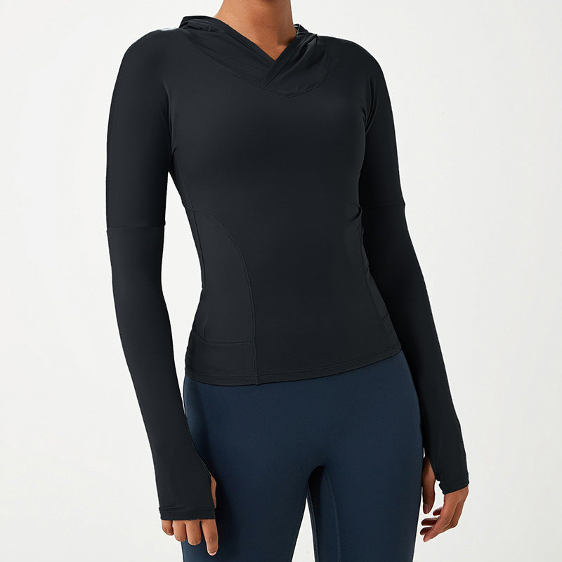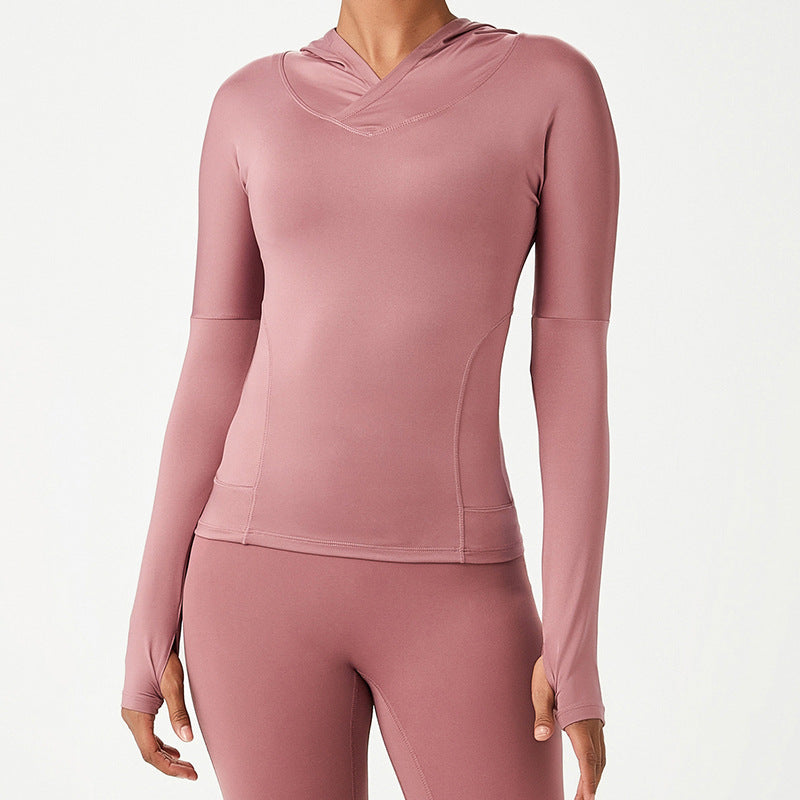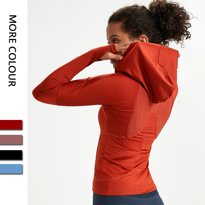 Women's sports tops, long-sleeved yoga clothes, quick-drying sports T-shirts, thumb button workout clothes, fall/winter fitness clothes