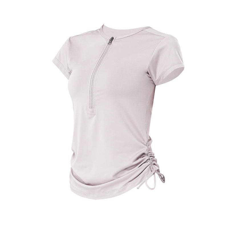 Zipper drawstring sports short-sleeved t-shirt women's yoga tops solid color quick-drying running fitness clothes women's yoga clothes