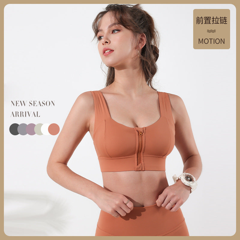 Zipper sports bra women's running yoga vest without steel ring gather fitness clothes beautiful back shockproof bra