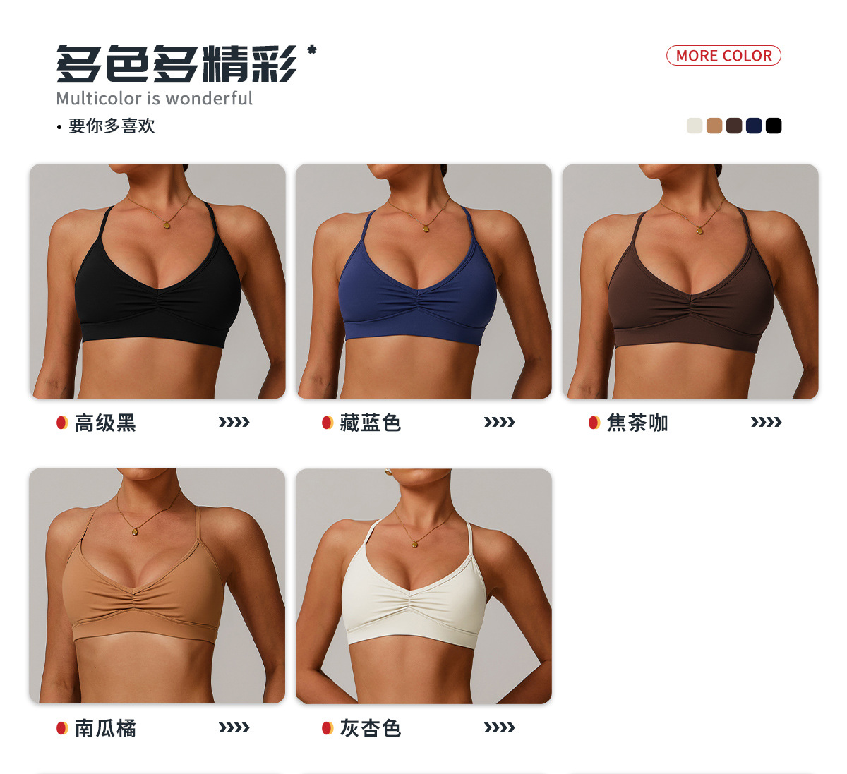 2022 new triangle beauty back fitness sports bra thin shoulder straps gathered nude yoga bra