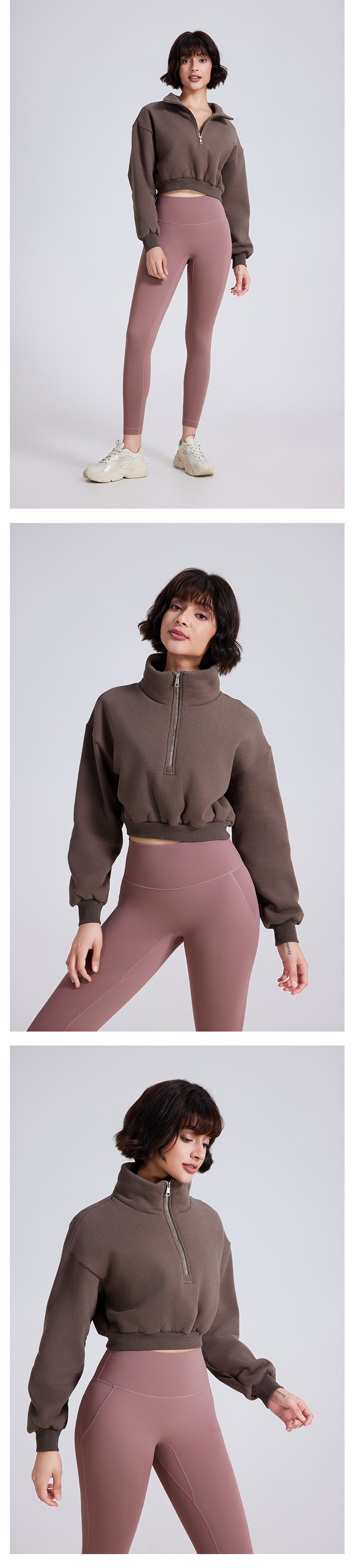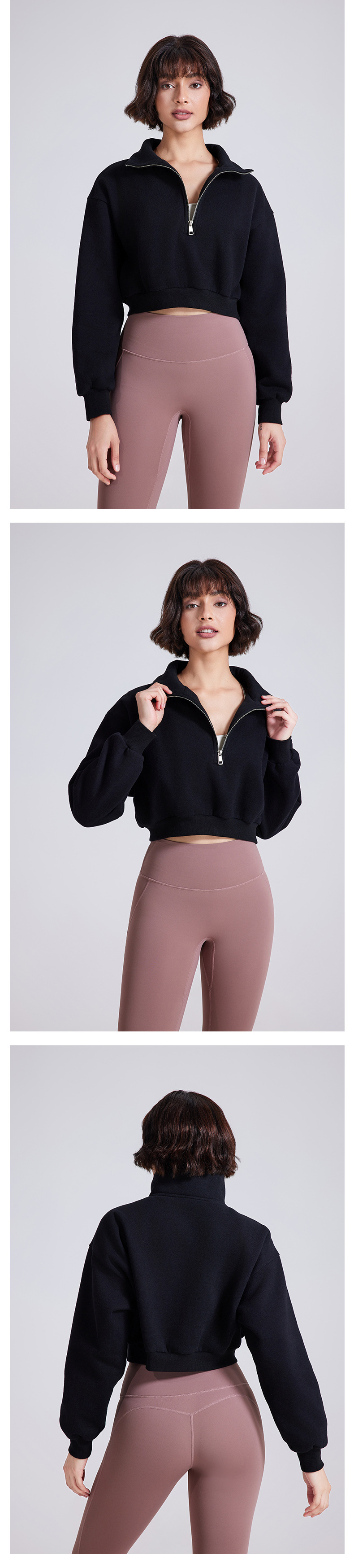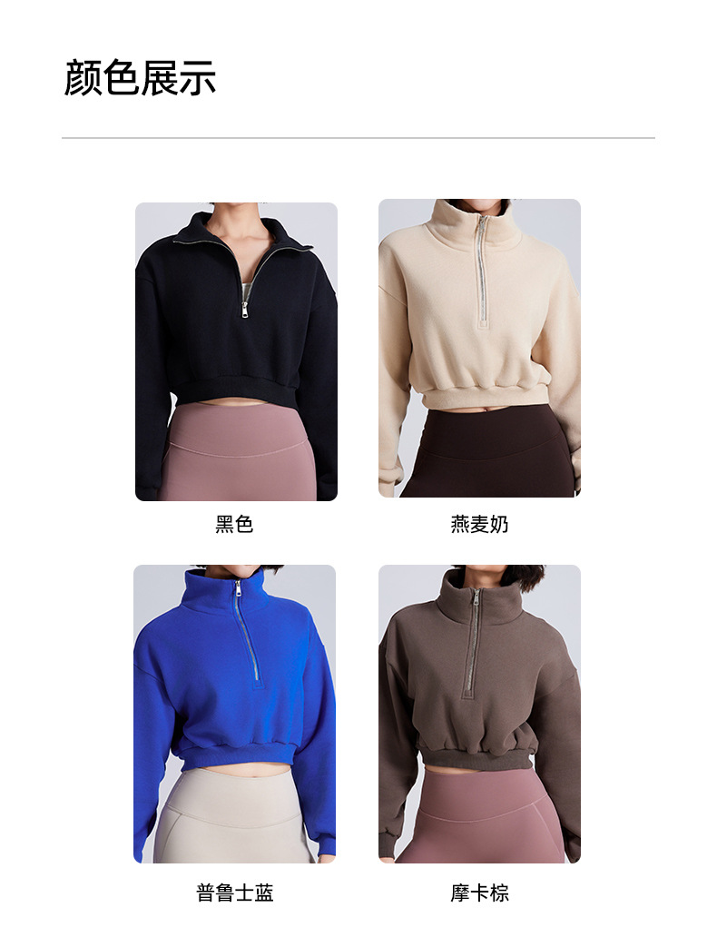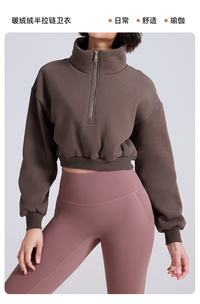 10/2023 Autumn and winter plus velvet stand collar half zip hoodie women loose casual yoga wear long sleeve top fitness wear sports coat