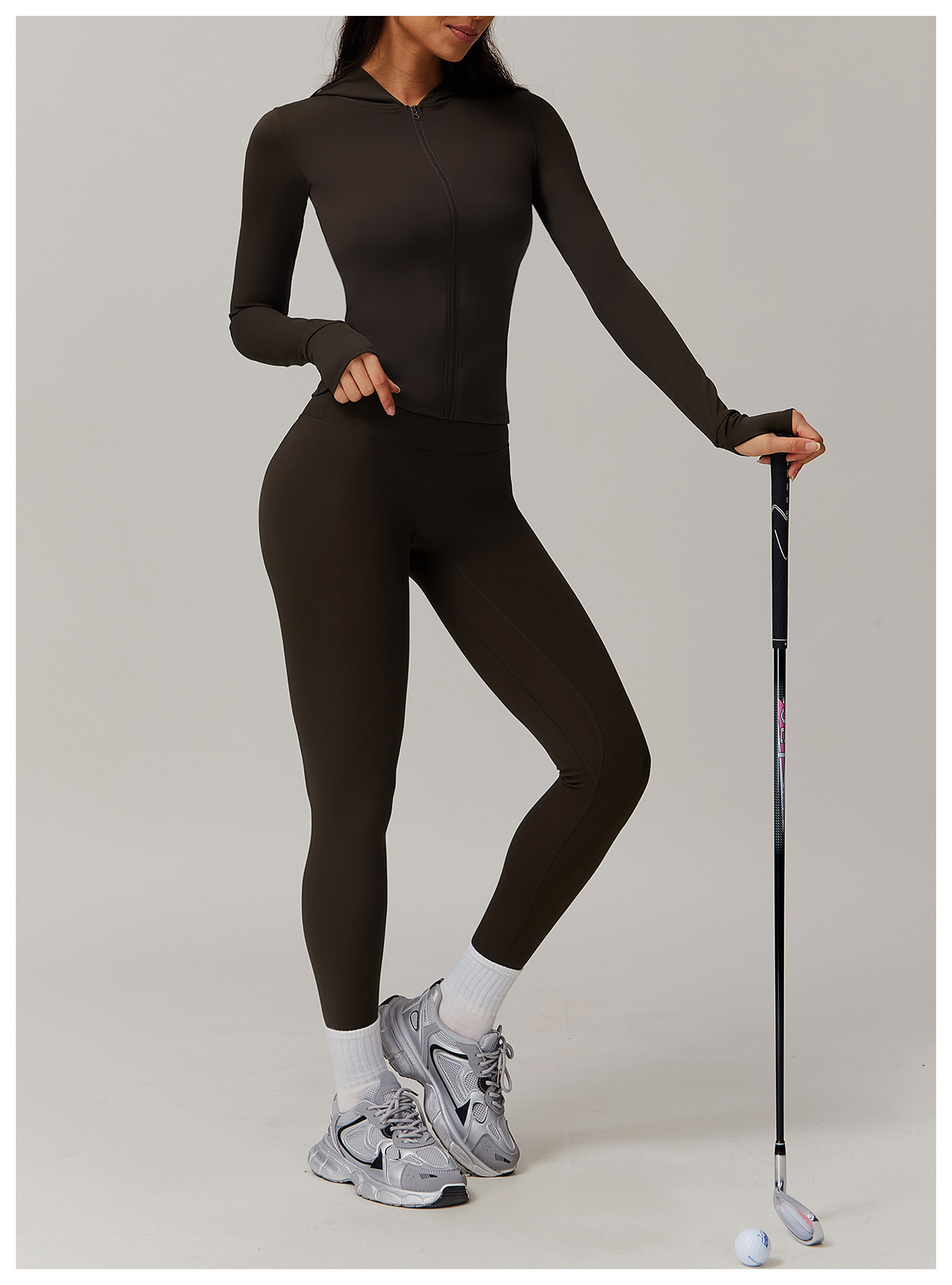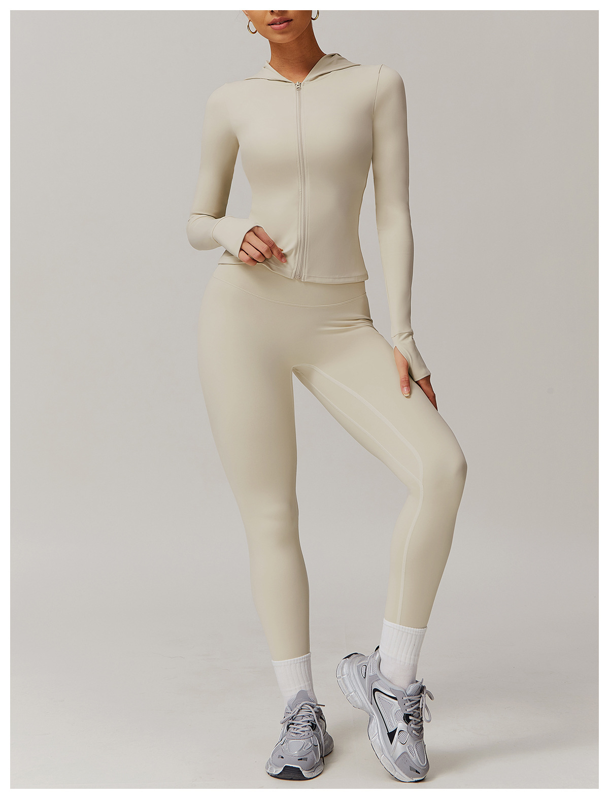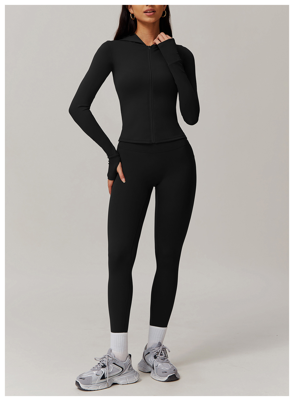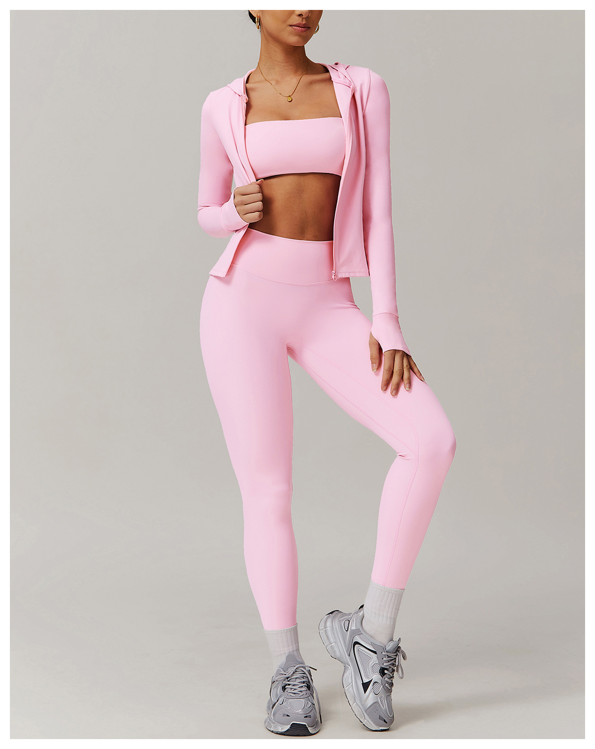 LINK-2 12/2024 Zippered sanded yoga suit for women, casual running and fitness, tight-fitting sports three-piece suit 9142
