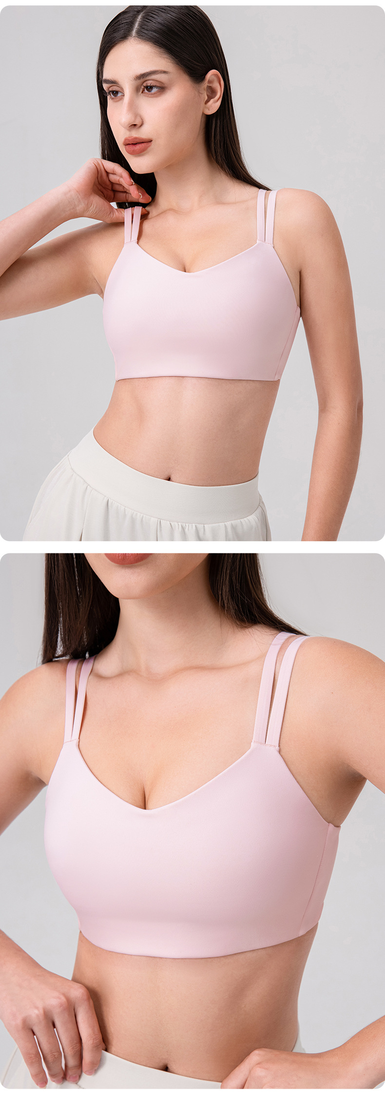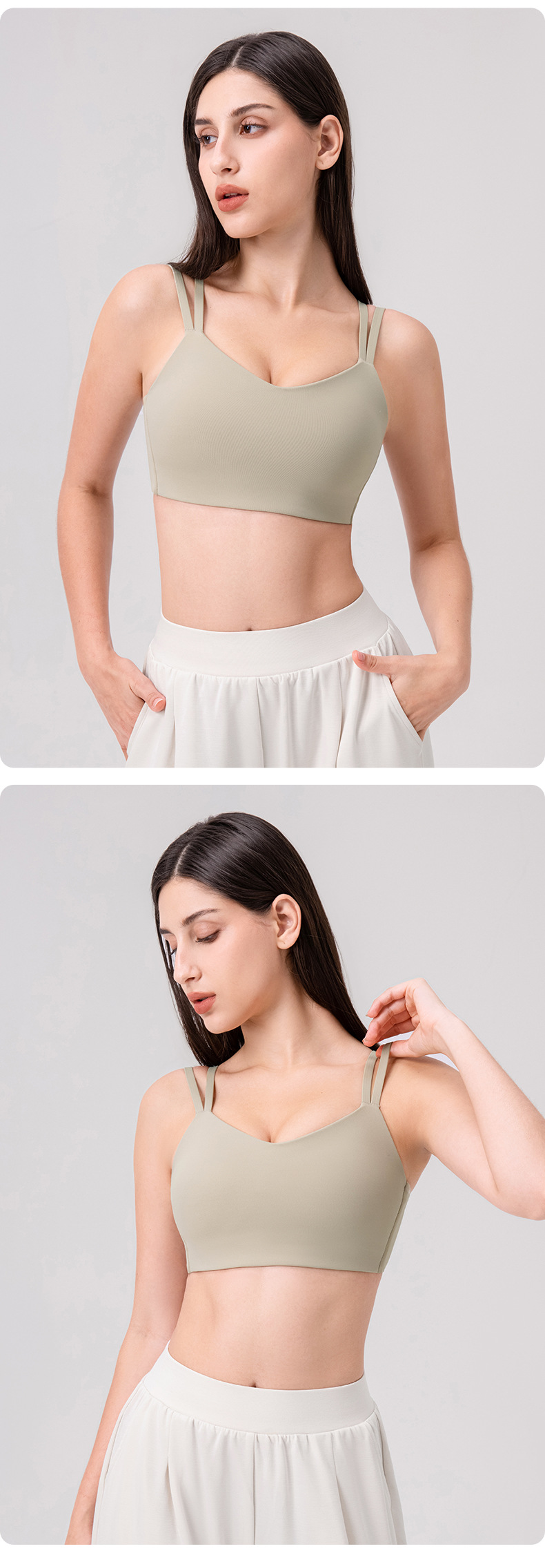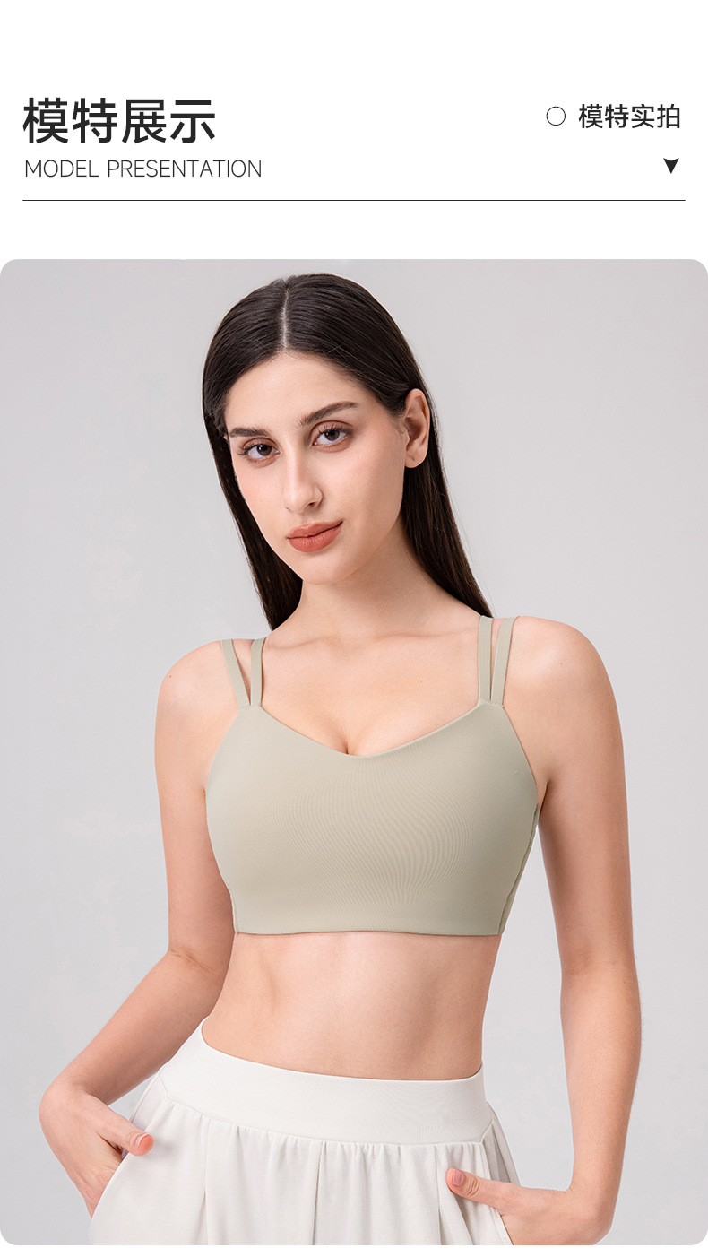 2022 new triangle beauty back fitness sports bra thin shoulder straps gathered nude yoga bra