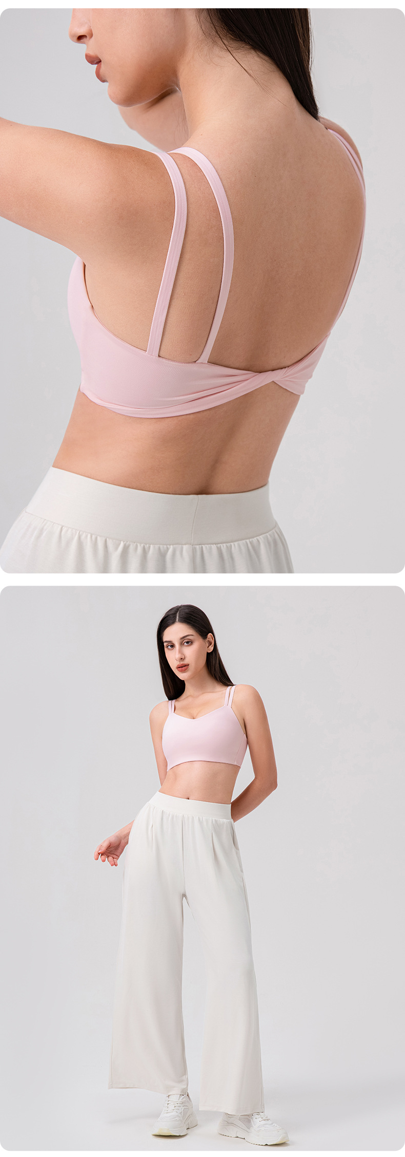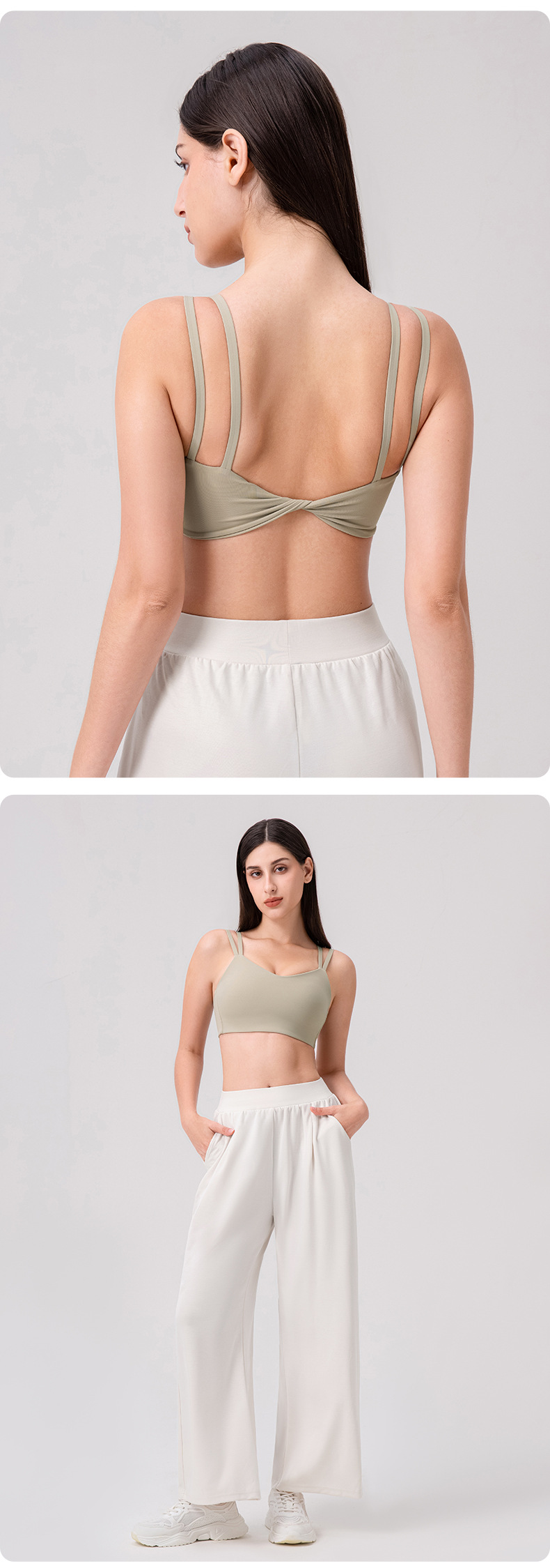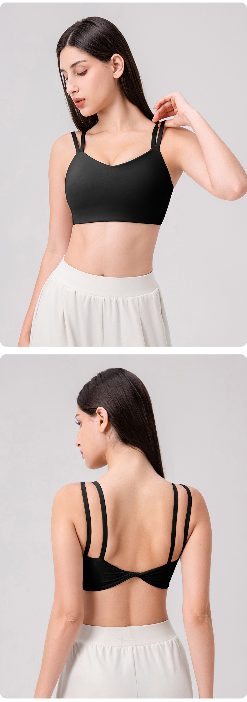 2022 new triangle beauty back fitness sports bra thin shoulder straps gathered nude yoga bra