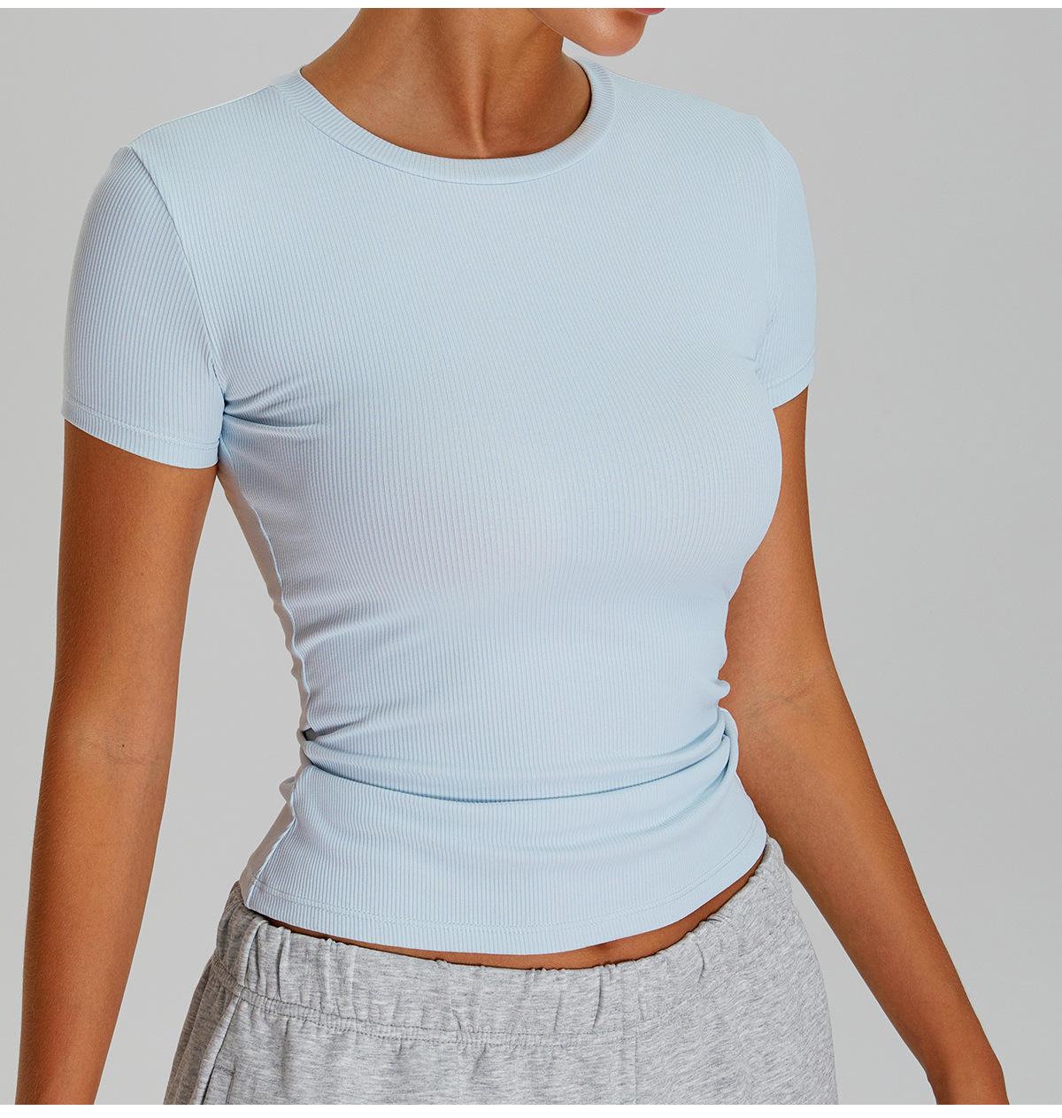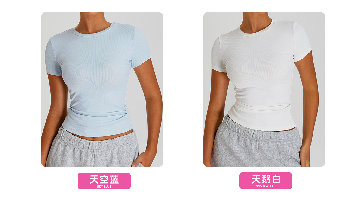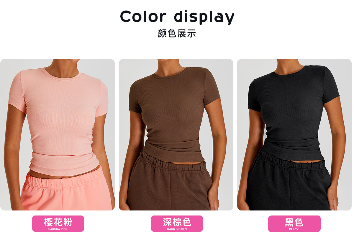05/2025 Threaded round-neck slimming short-sleeved women's outdoor casual sports, running and fitness quick-drying T-shirt, yoga wear