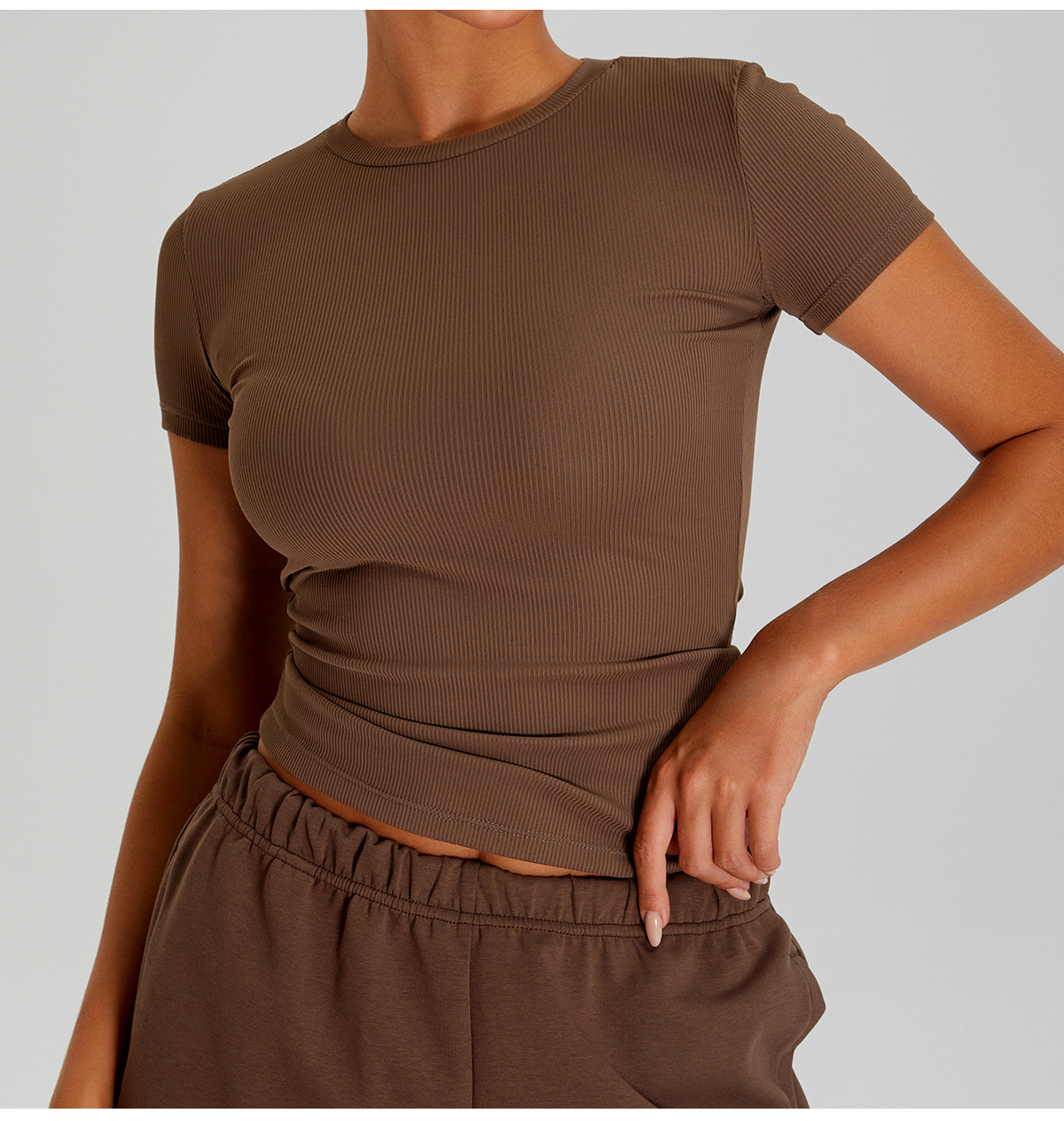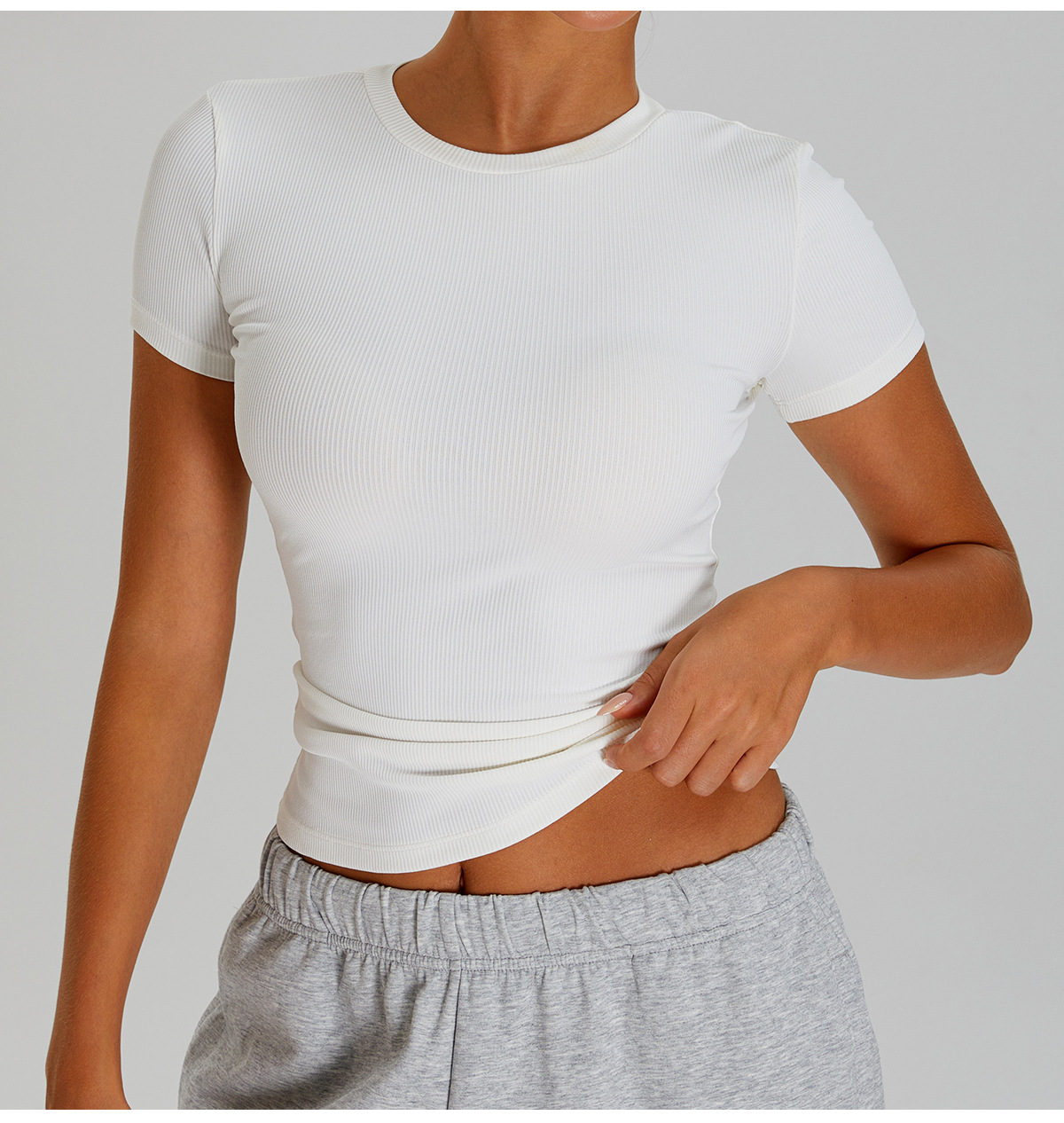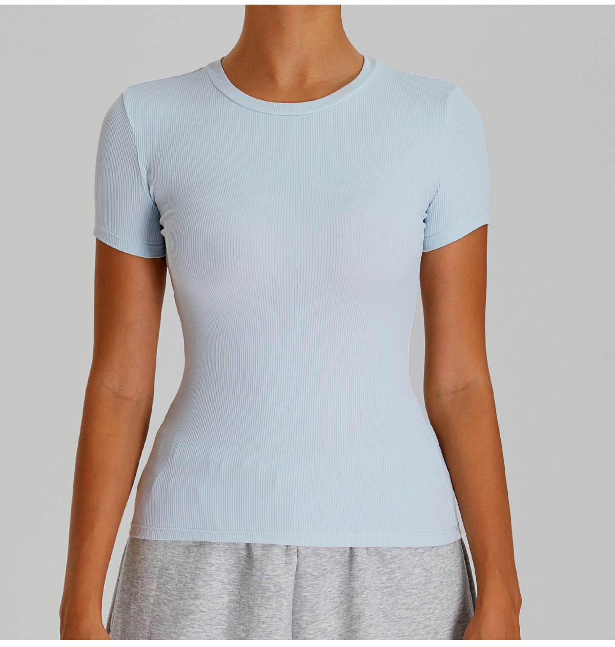 05/2025 Threaded round-neck slimming short-sleeved women's outdoor casual sports, running and fitness quick-drying T-shirt, yoga wear