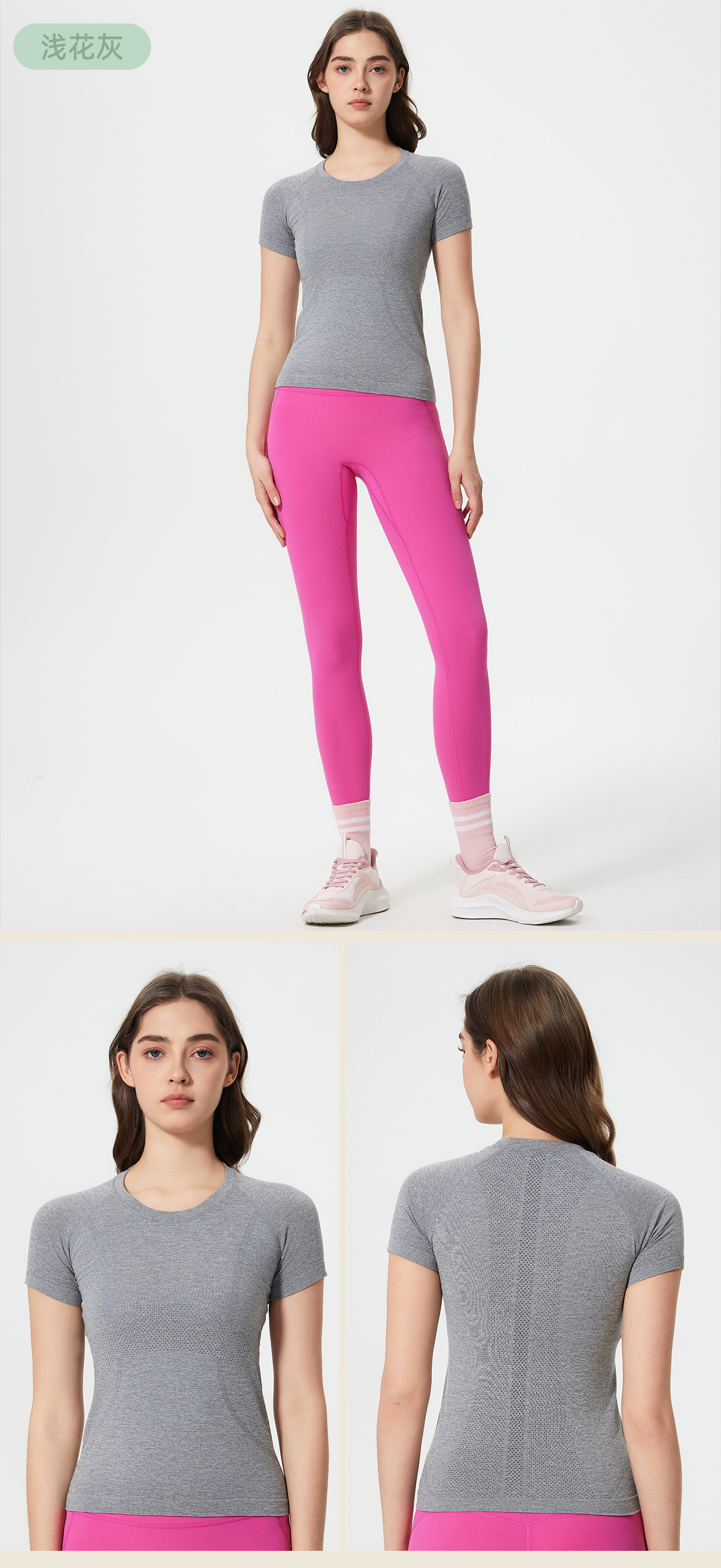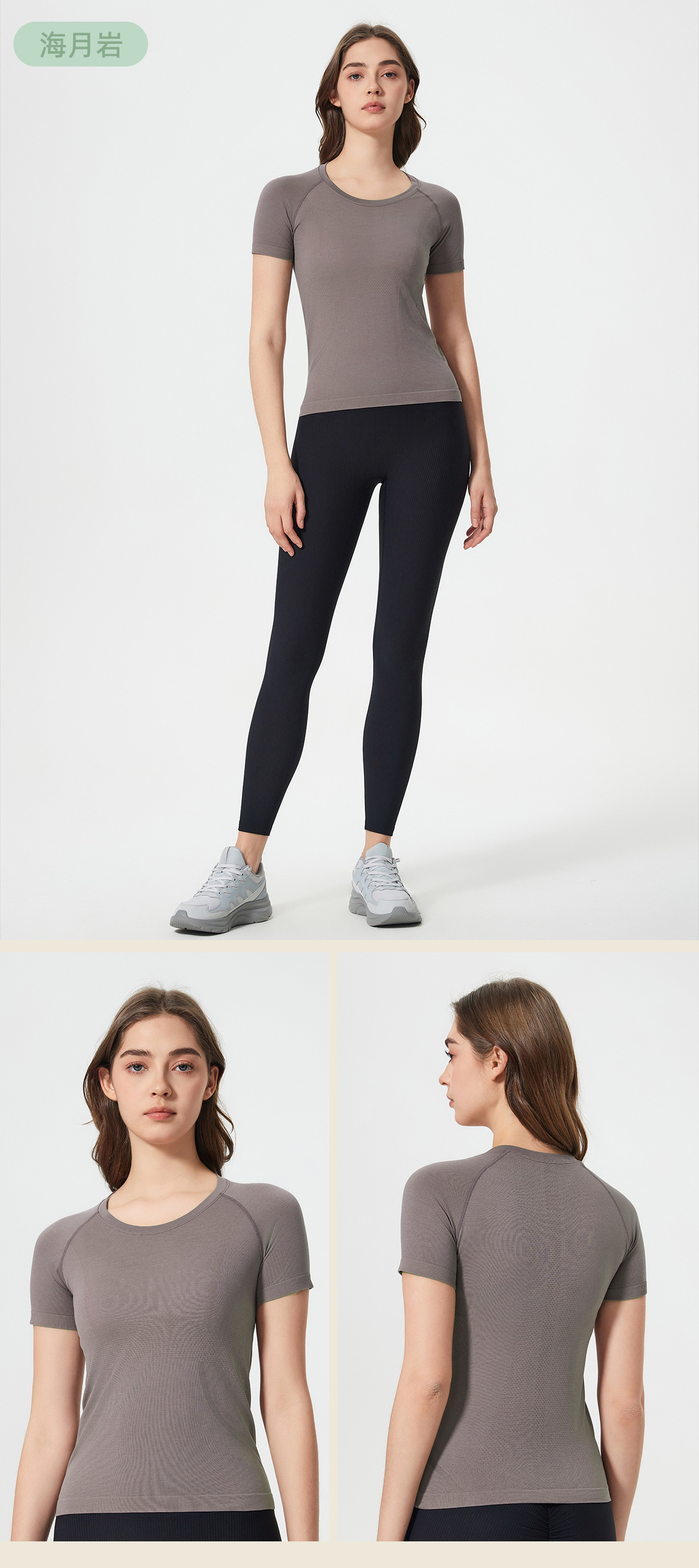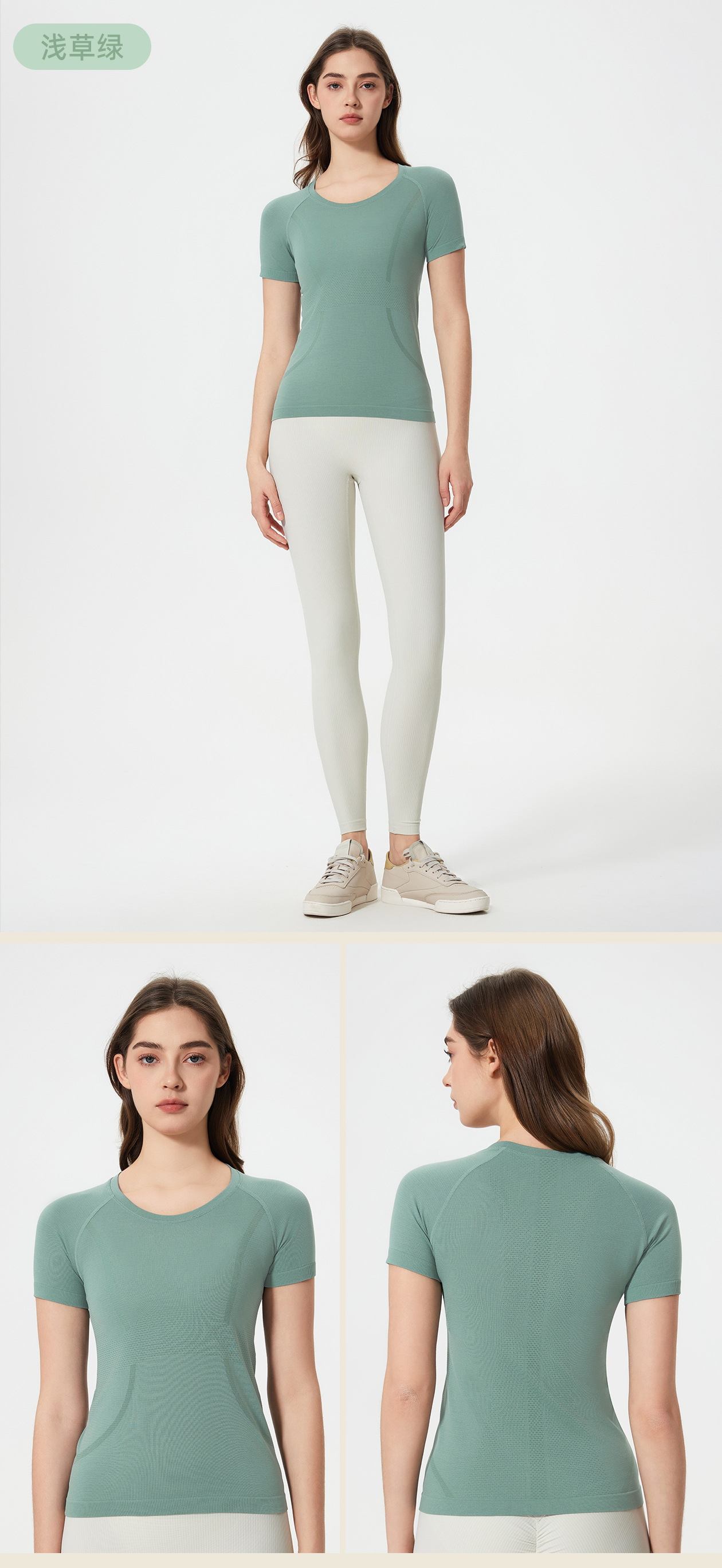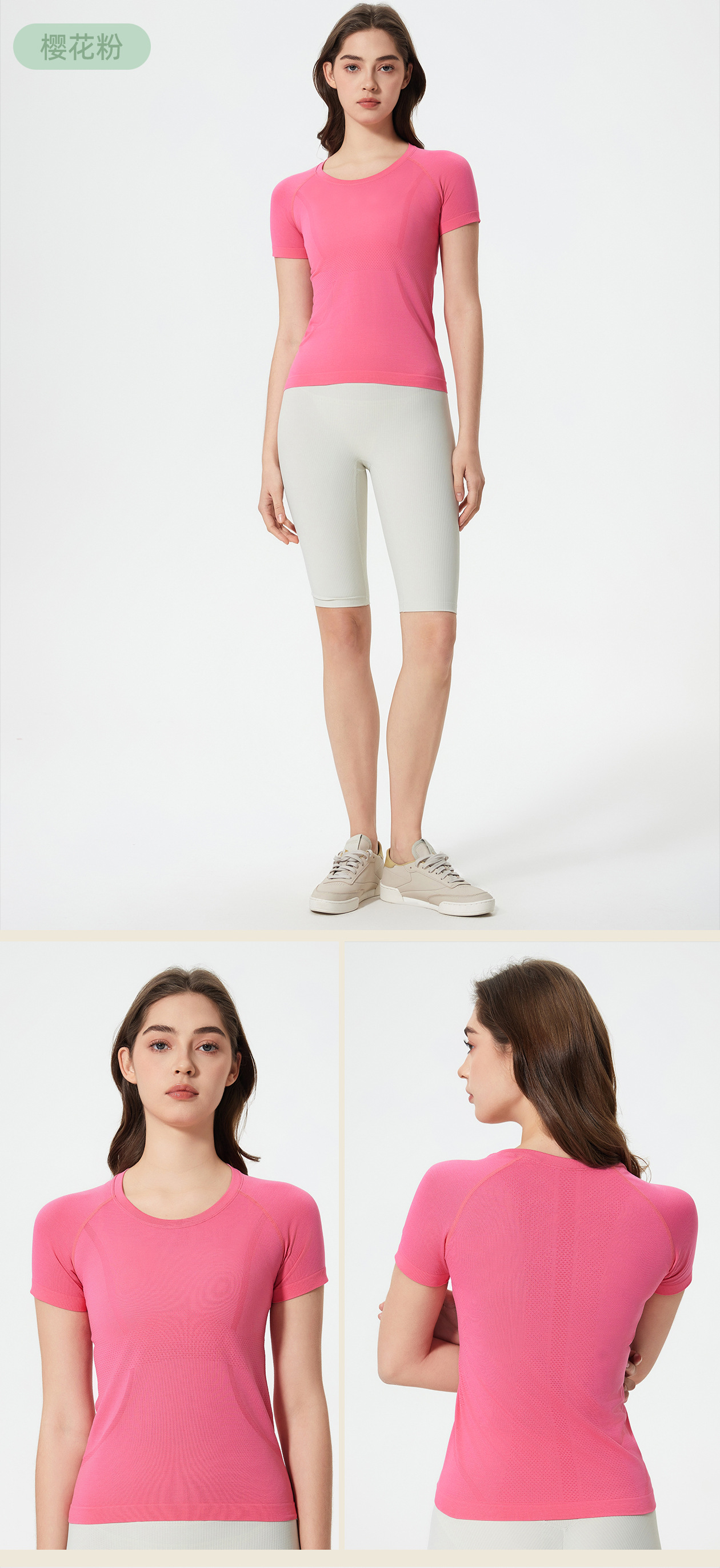 03/2025 Summer round neck slim fit fitness yoga clothes seamless skin-friendly breathable sports short-sleeved T-shirt female D25073