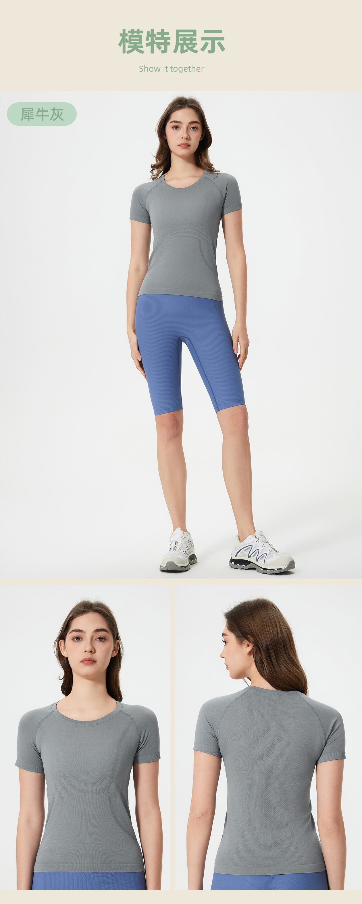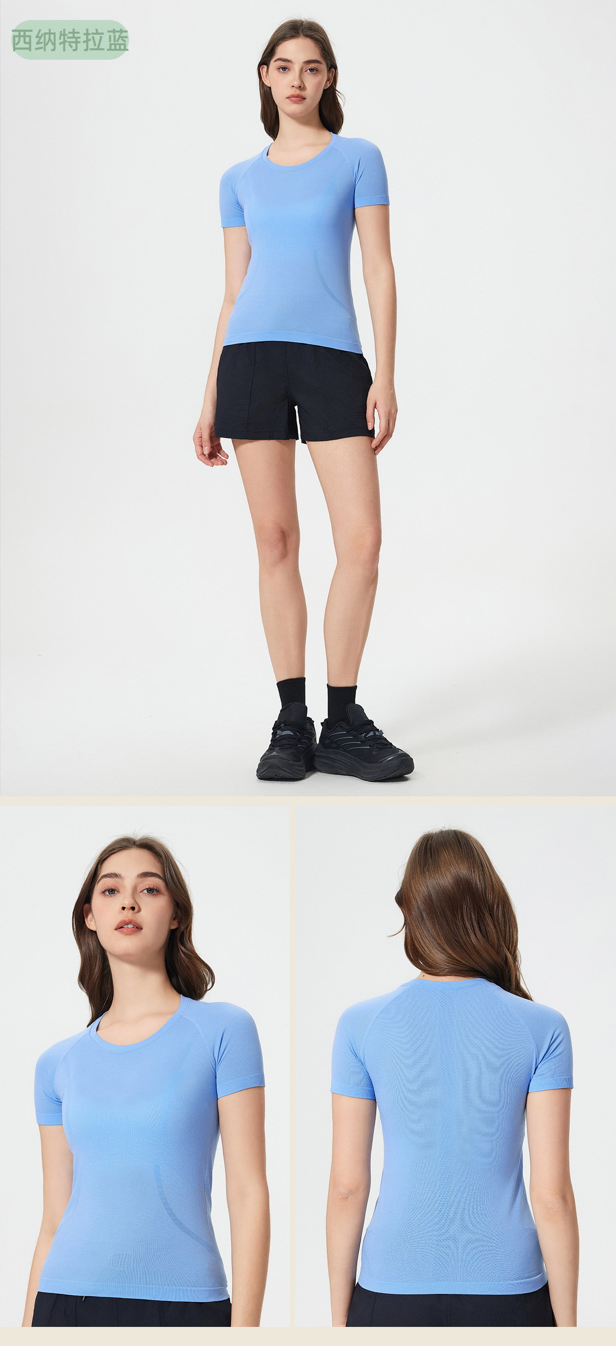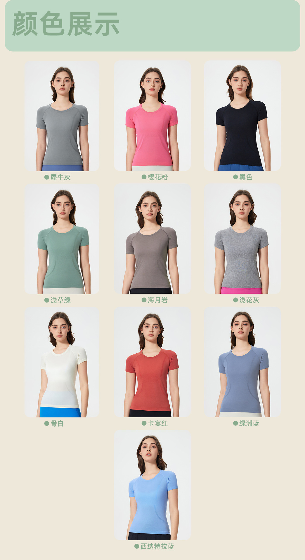 03/2025 Summer round neck slim fit fitness yoga clothes seamless skin-friendly breathable sports short-sleeved T-shirt female D25073