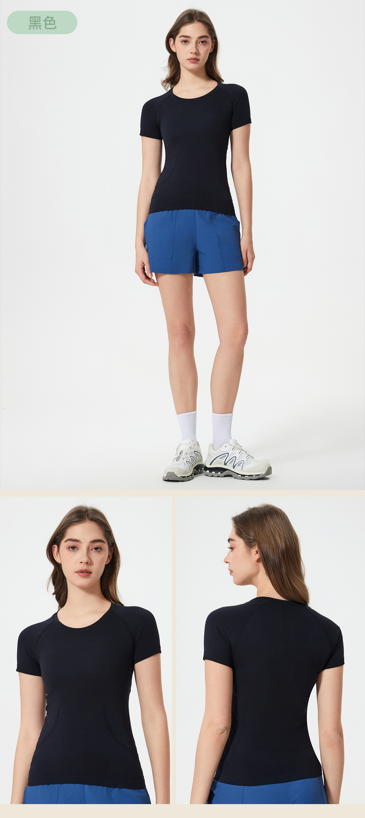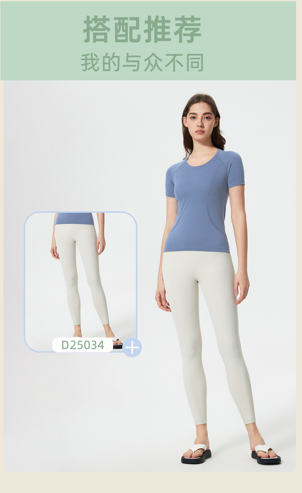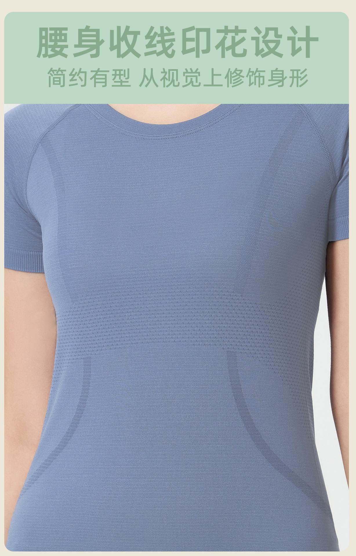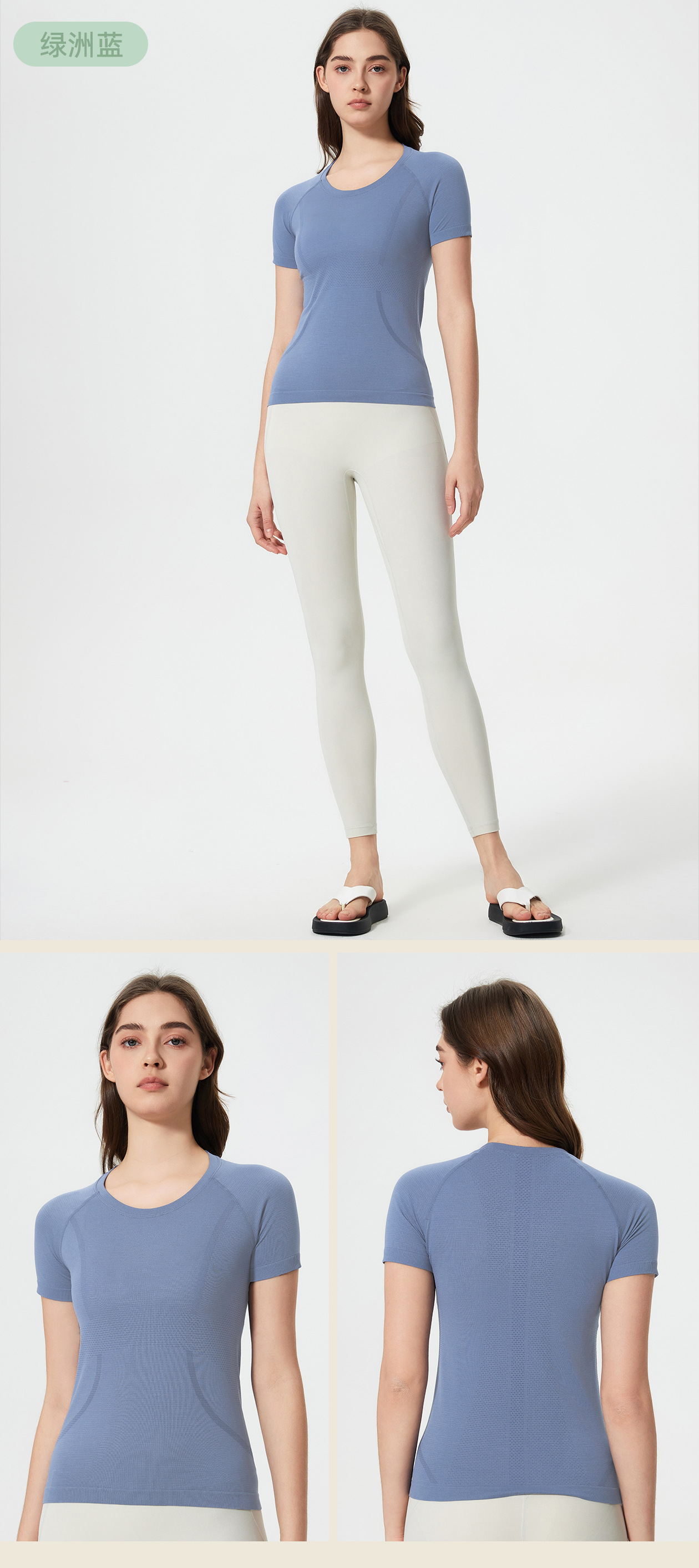 03/2025 Summer round neck slim fit fitness yoga clothes seamless skin-friendly breathable sports short-sleeved T-shirt female D25073