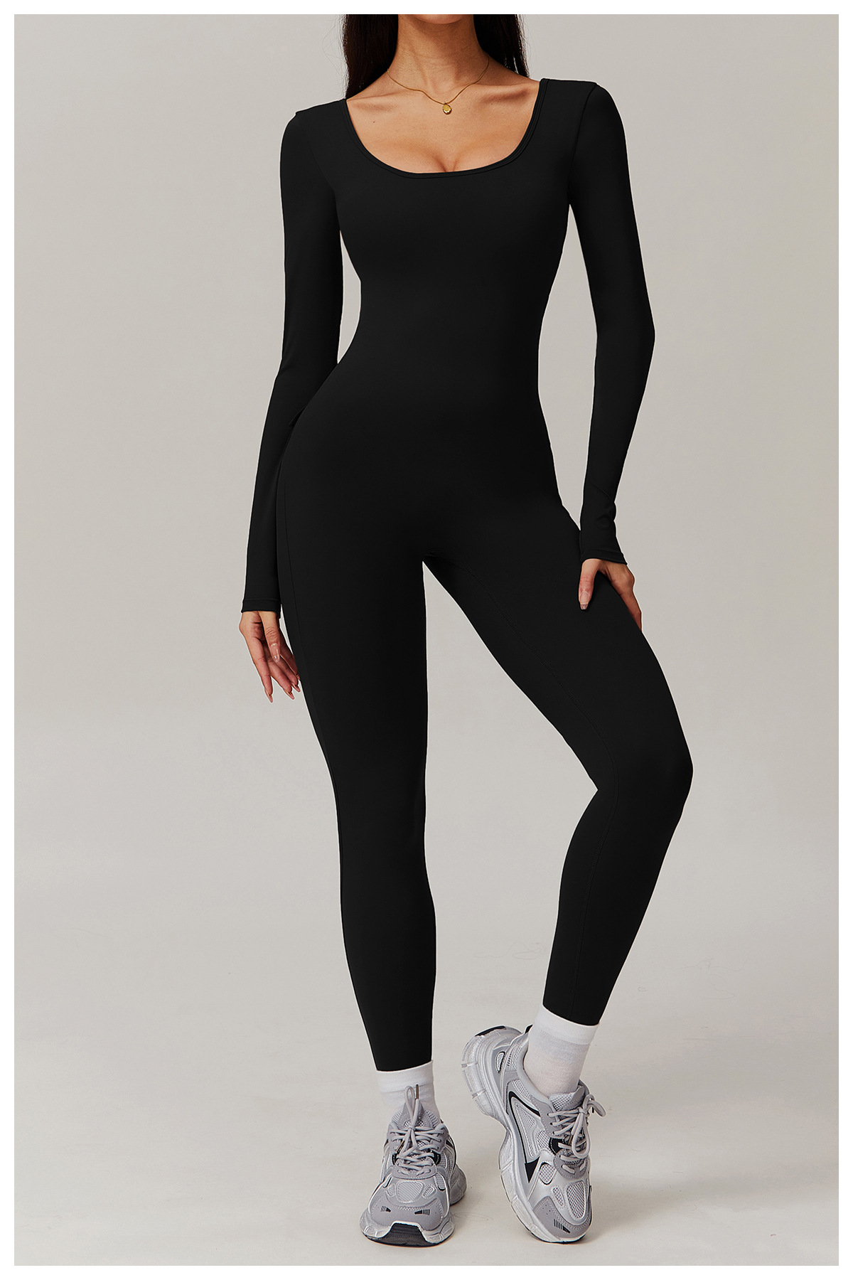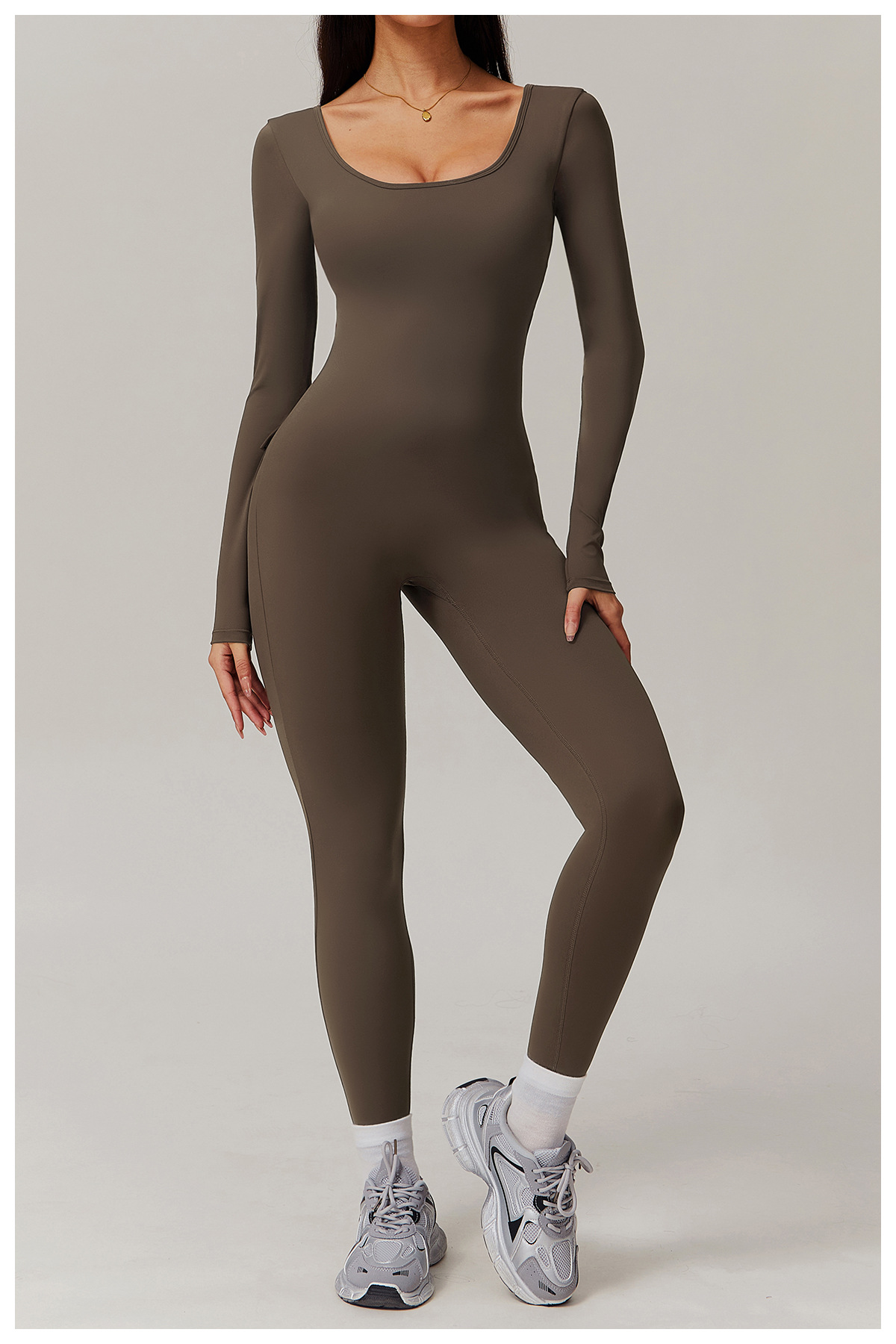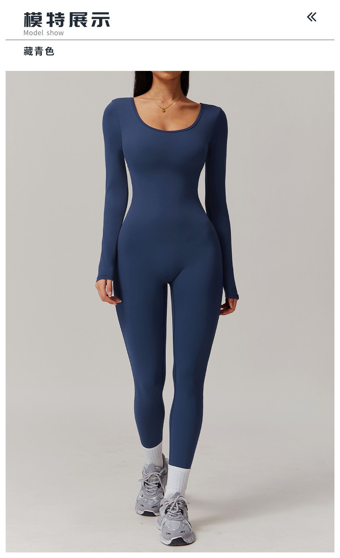 11/2024 Beautiful back nude long-sleeved yoga jumpsuit slim running fitness sports jumpsuit 8979