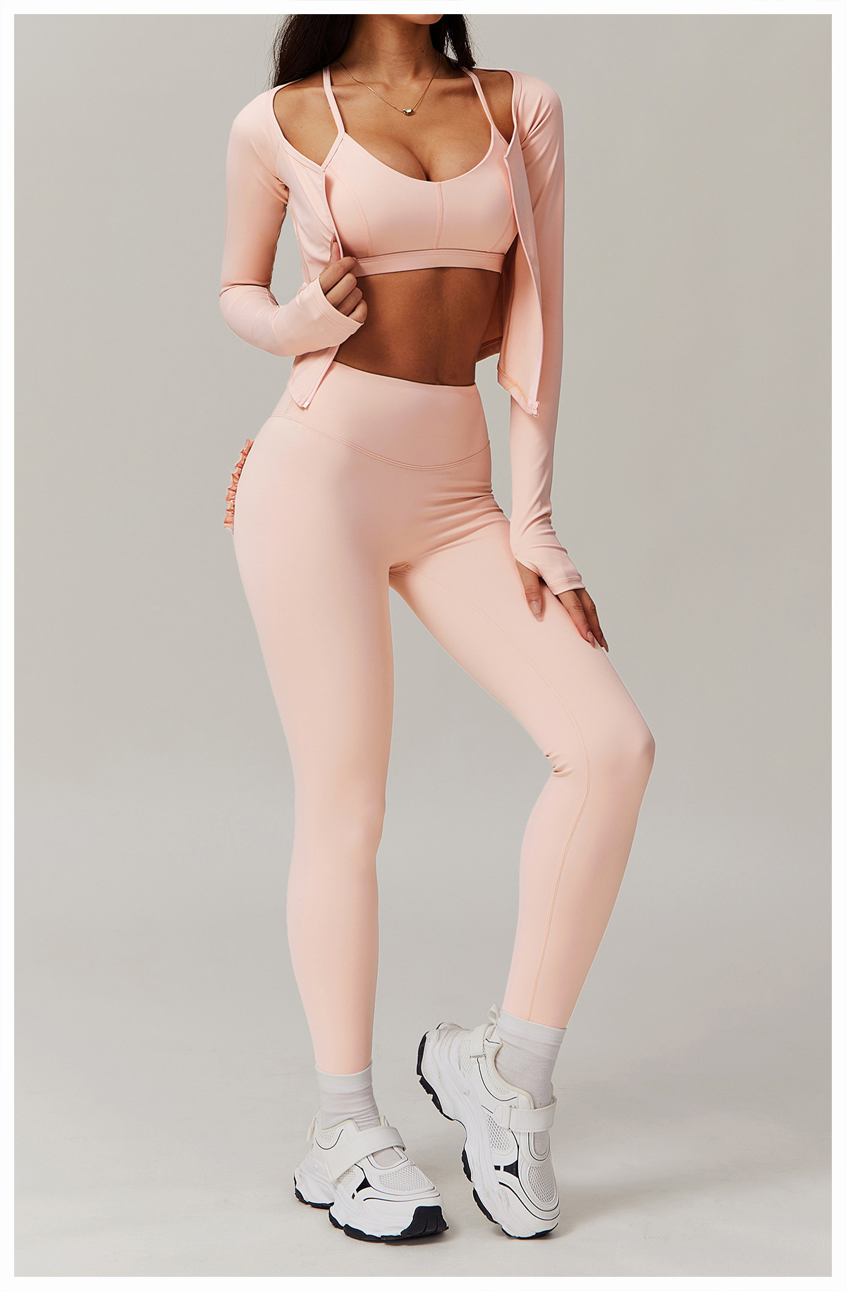 01/2025 High-waisted tight-fitting three-part yoga pants women's hip peach sports shorts quick-drying outdoor fitness pants