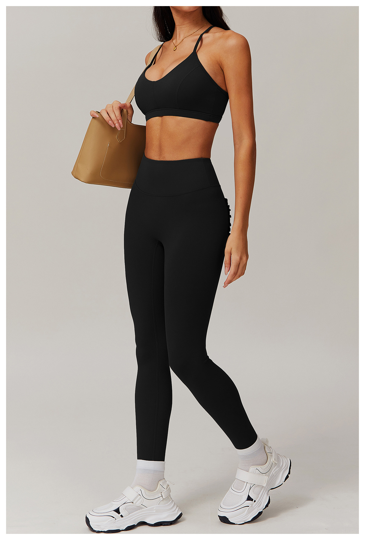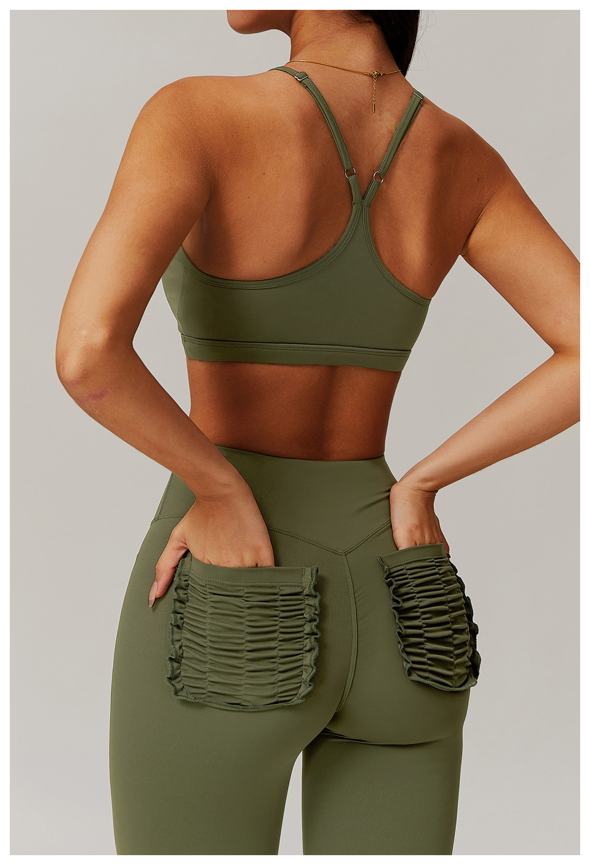 2022 new triangle beauty back fitness sports bra thin shoulder straps gathered nude yoga bra