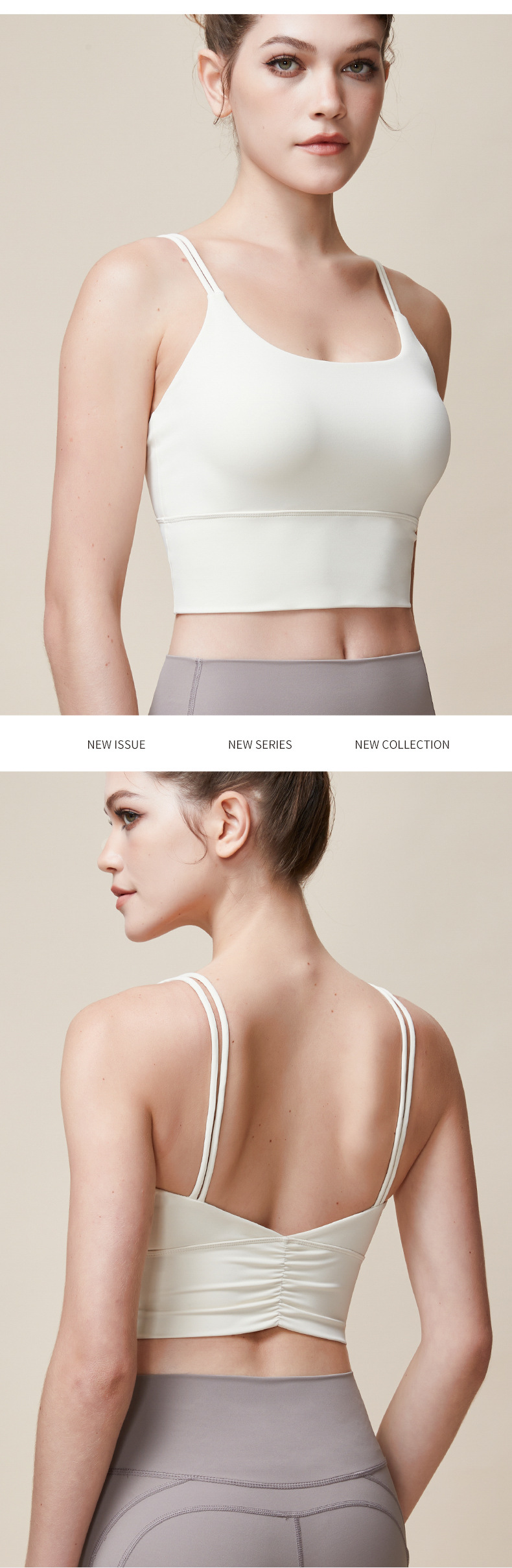 2022 new triangle beauty back fitness sports bra thin shoulder straps gathered nude yoga bra