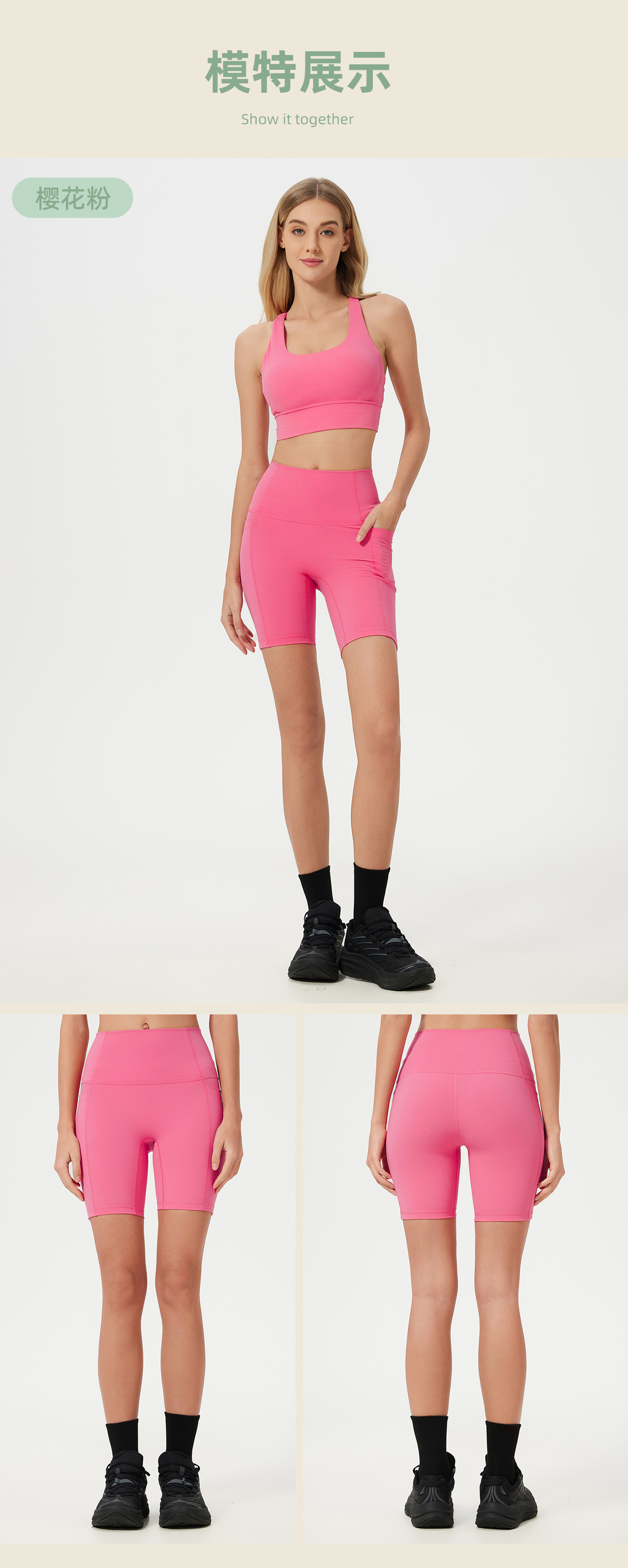 2024 new colors 2022 spring and summer new high waist shorts nude T-line yoga pants women's European and American peach hip lift three-point fitness pants
