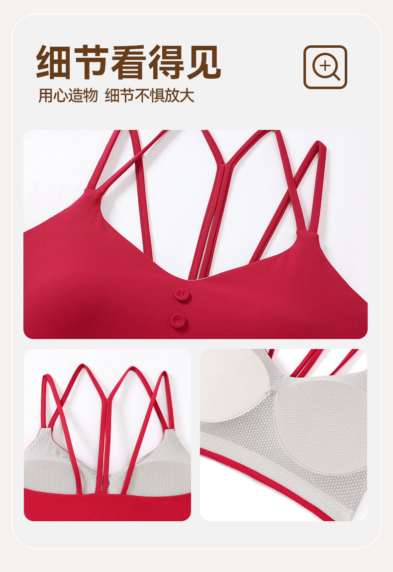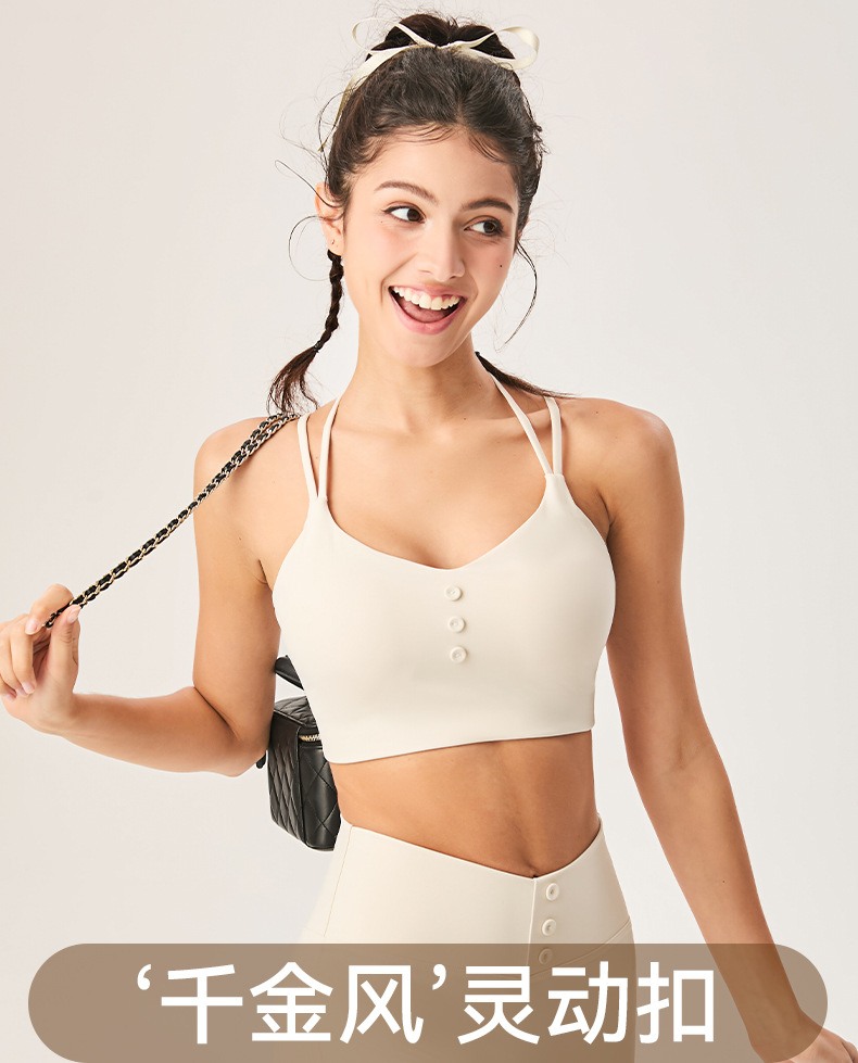 2022 new triangle beauty back fitness sports bra thin shoulder straps gathered nude yoga bra