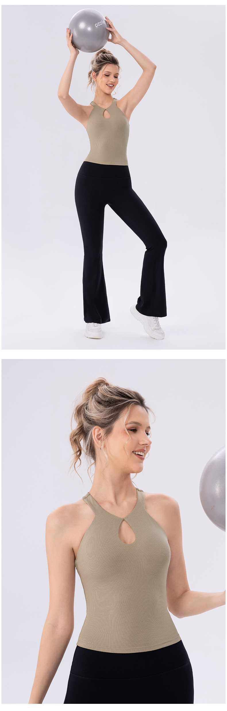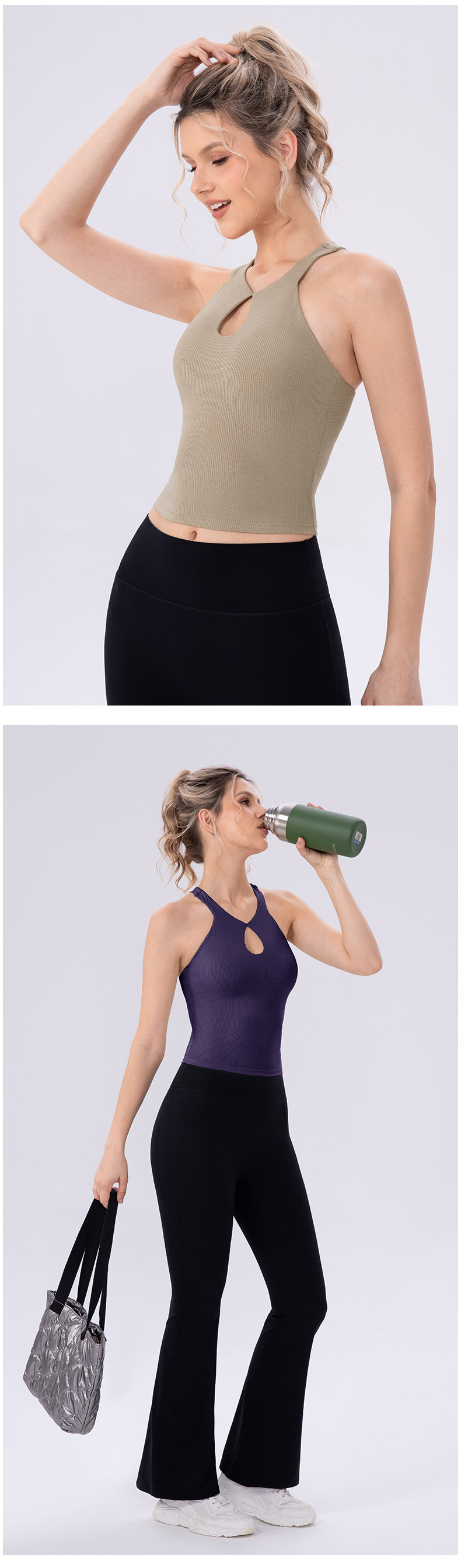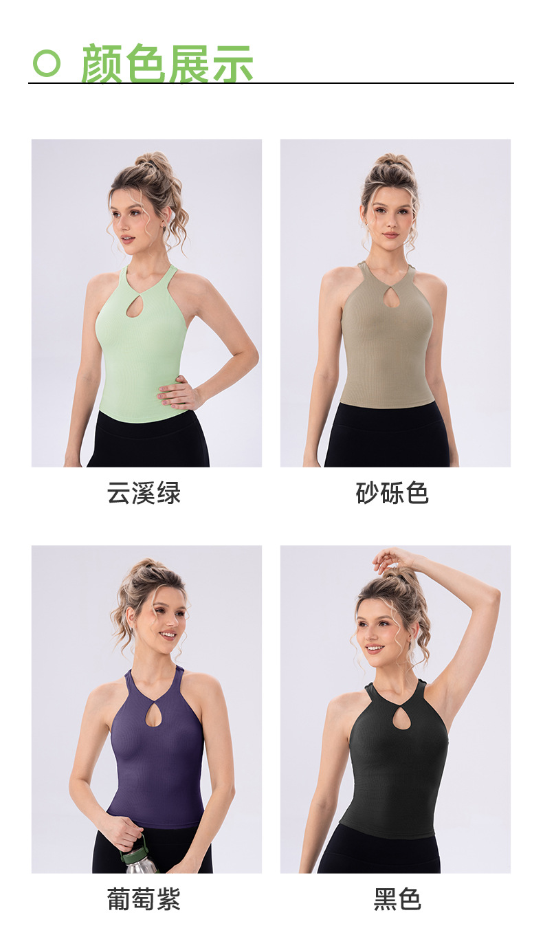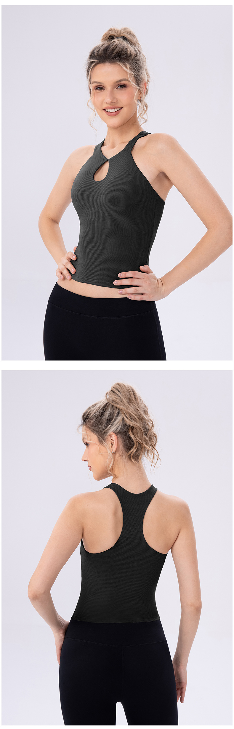 07/2025 Yoga vest for women, hollow halter neck, I-shaped beautiful back, yoga clothing top with chest pad, shockproof sports running vest