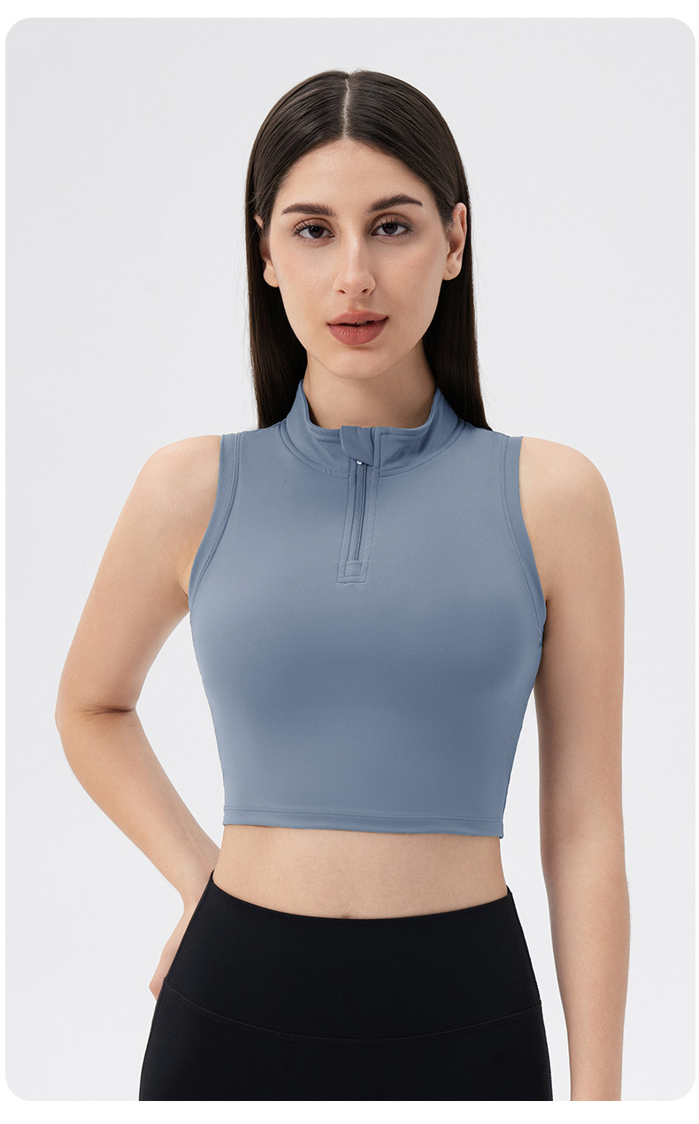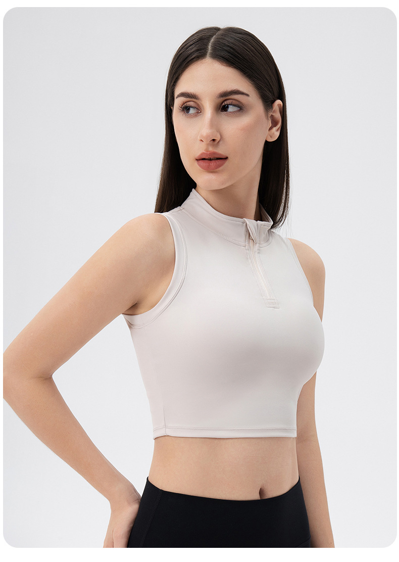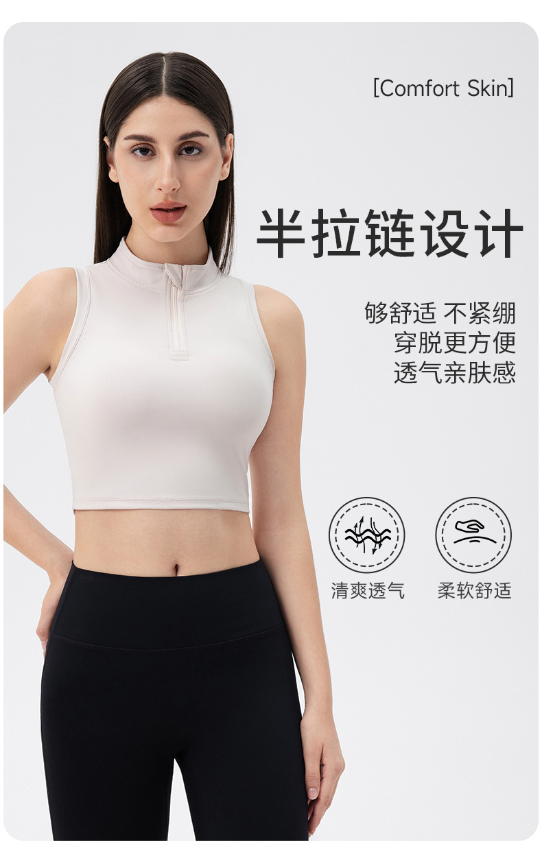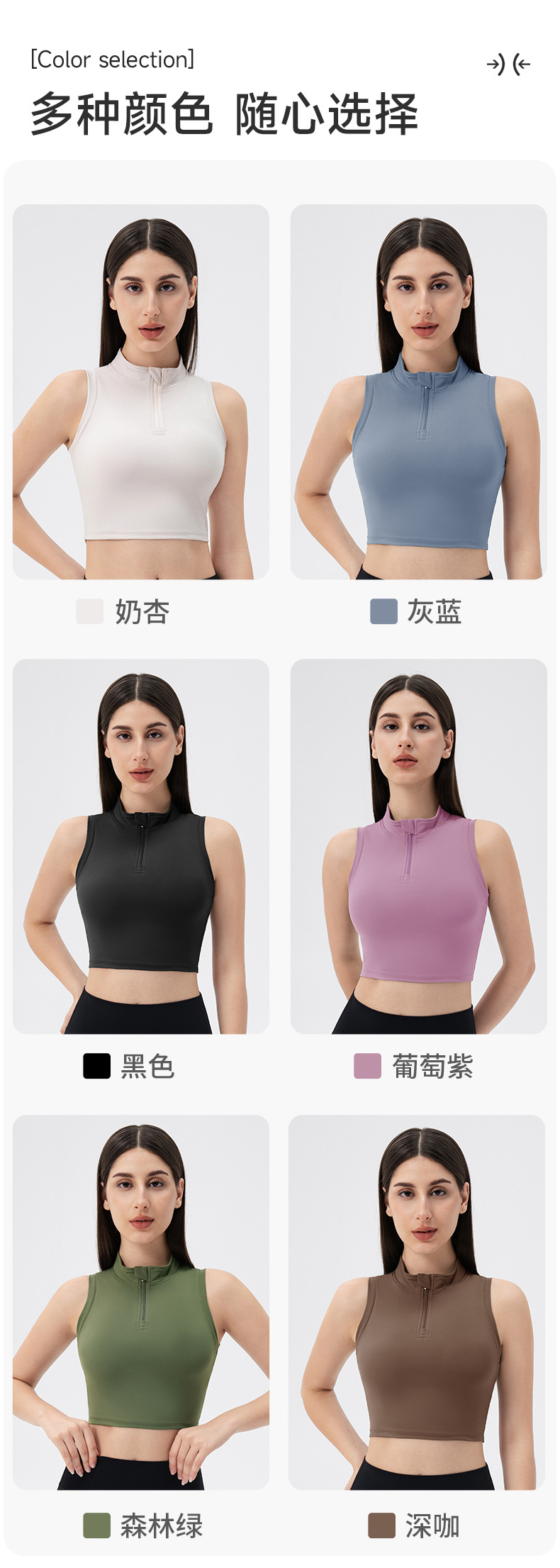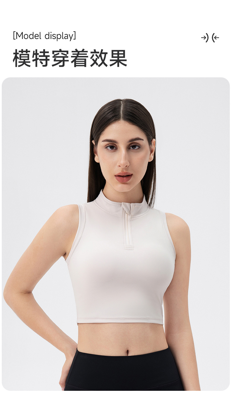 11/2024 Sleeveless Stand Collar Slim Yoga Wear Vest Front Zipper Tight Sports Top with Chest Pad Running Fitness Vest for Women