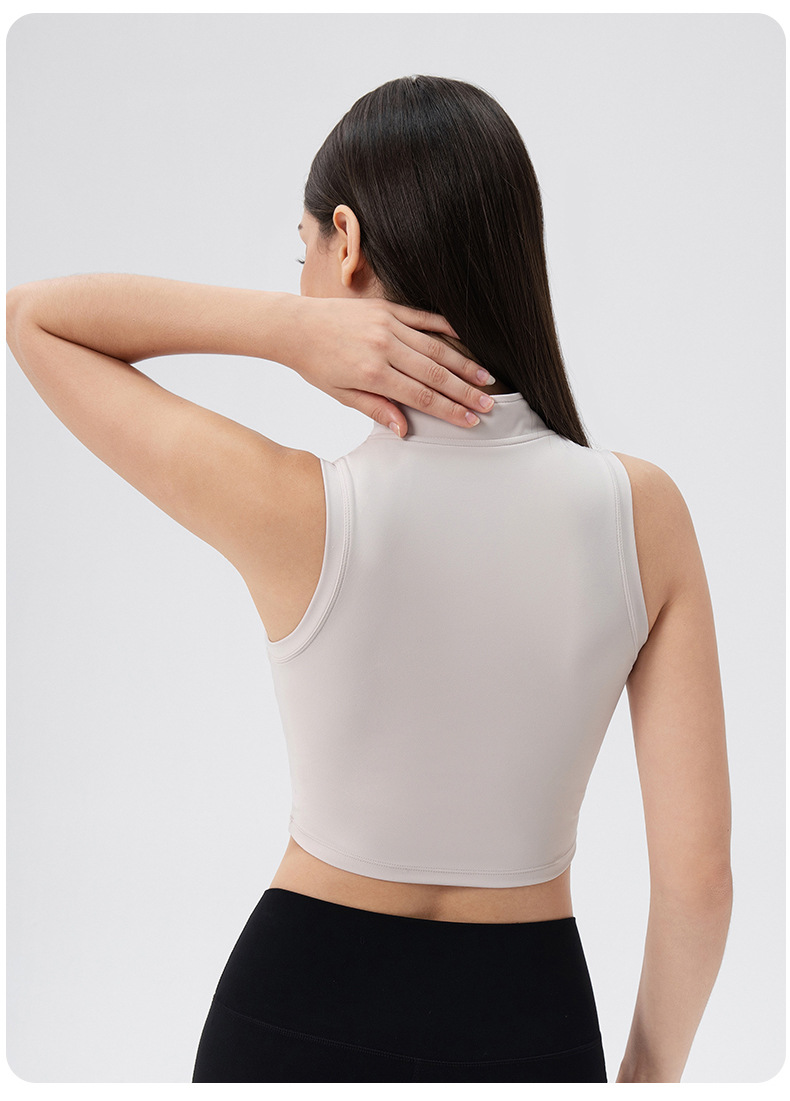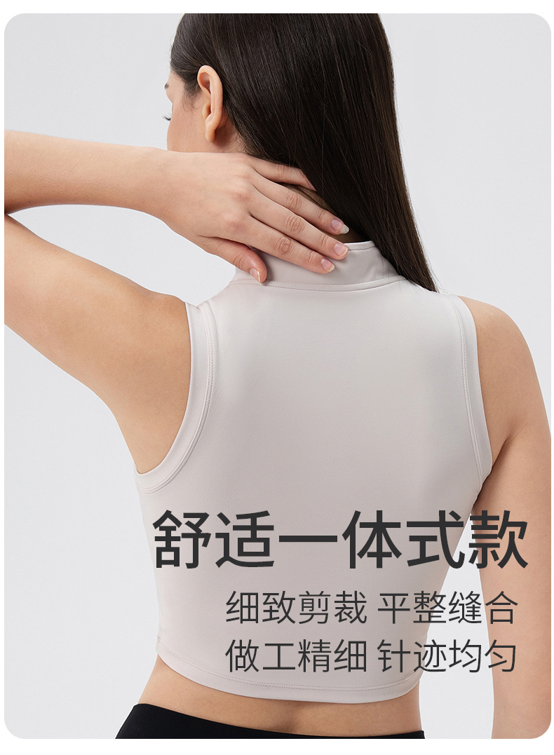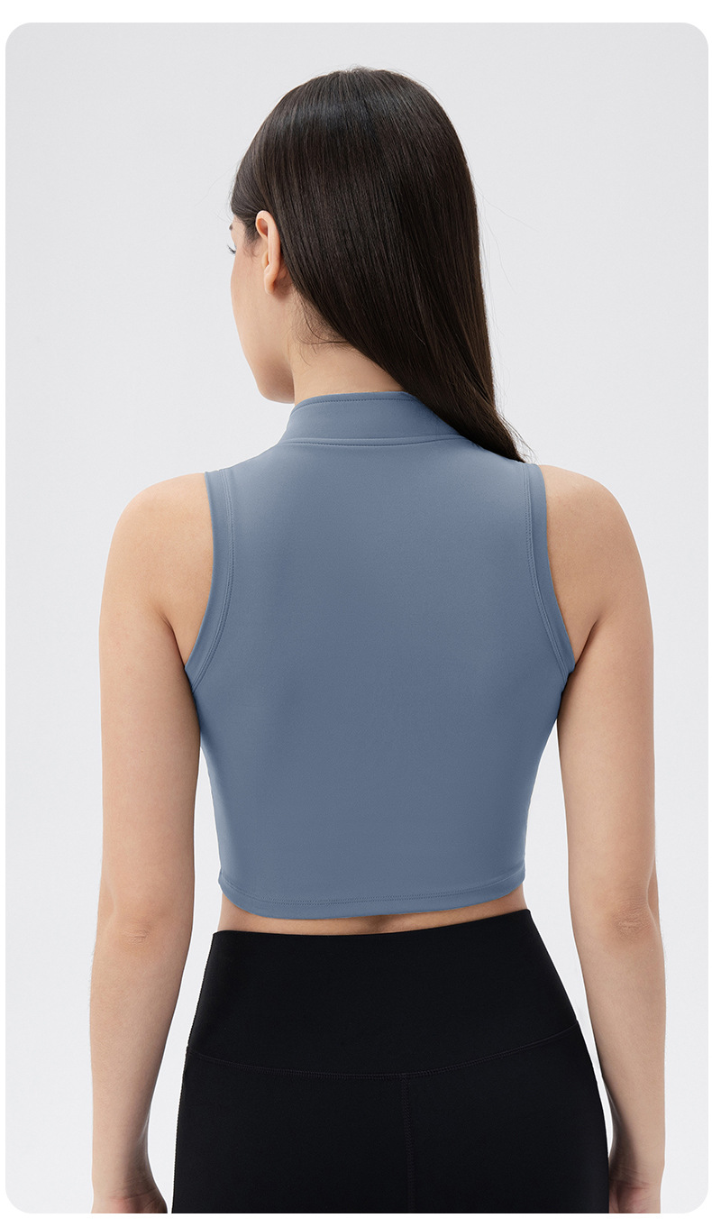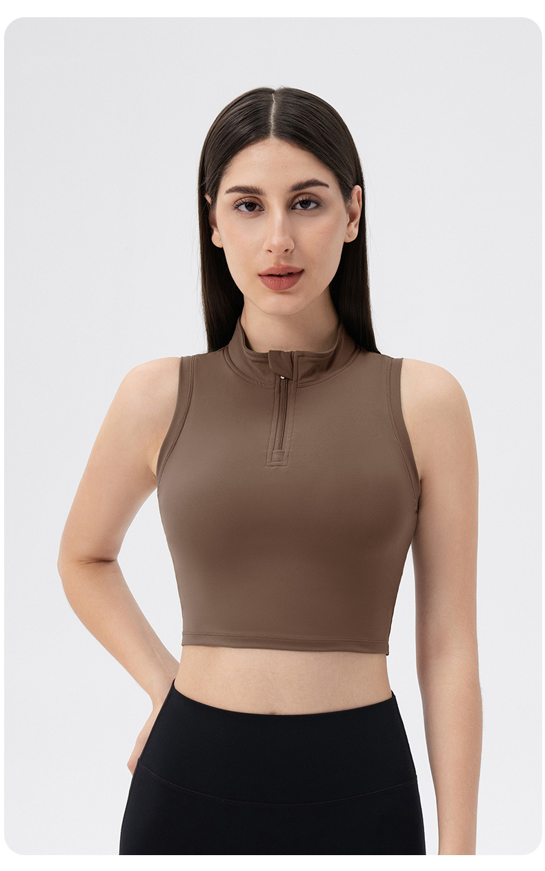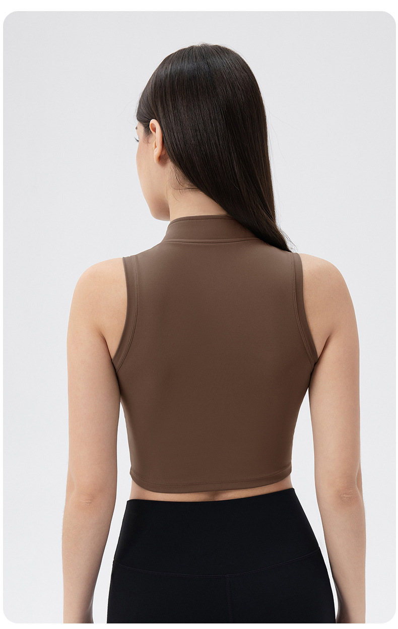 11/2024 Sleeveless Stand Collar Slim Yoga Wear Vest Front Zipper Tight Sports Top with Chest Pad Running Fitness Vest for Women