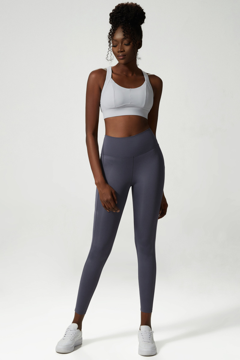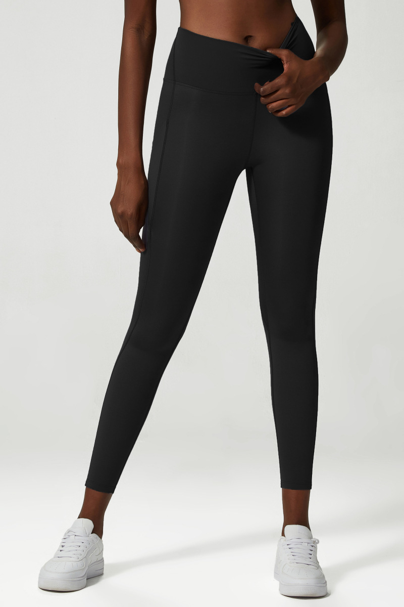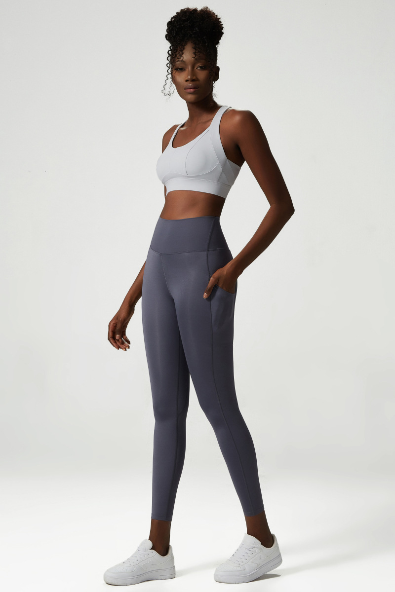2022 spring new cross-border yoga pants women's anti-rolling fitness trousers side pocket sports tights