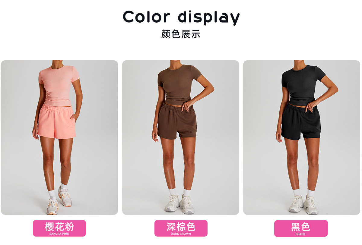 05/2025 Summer new casual loose sports two-piece suit for women quick-drying heat dissipation round neck threaded T-shirt fitness running suit
