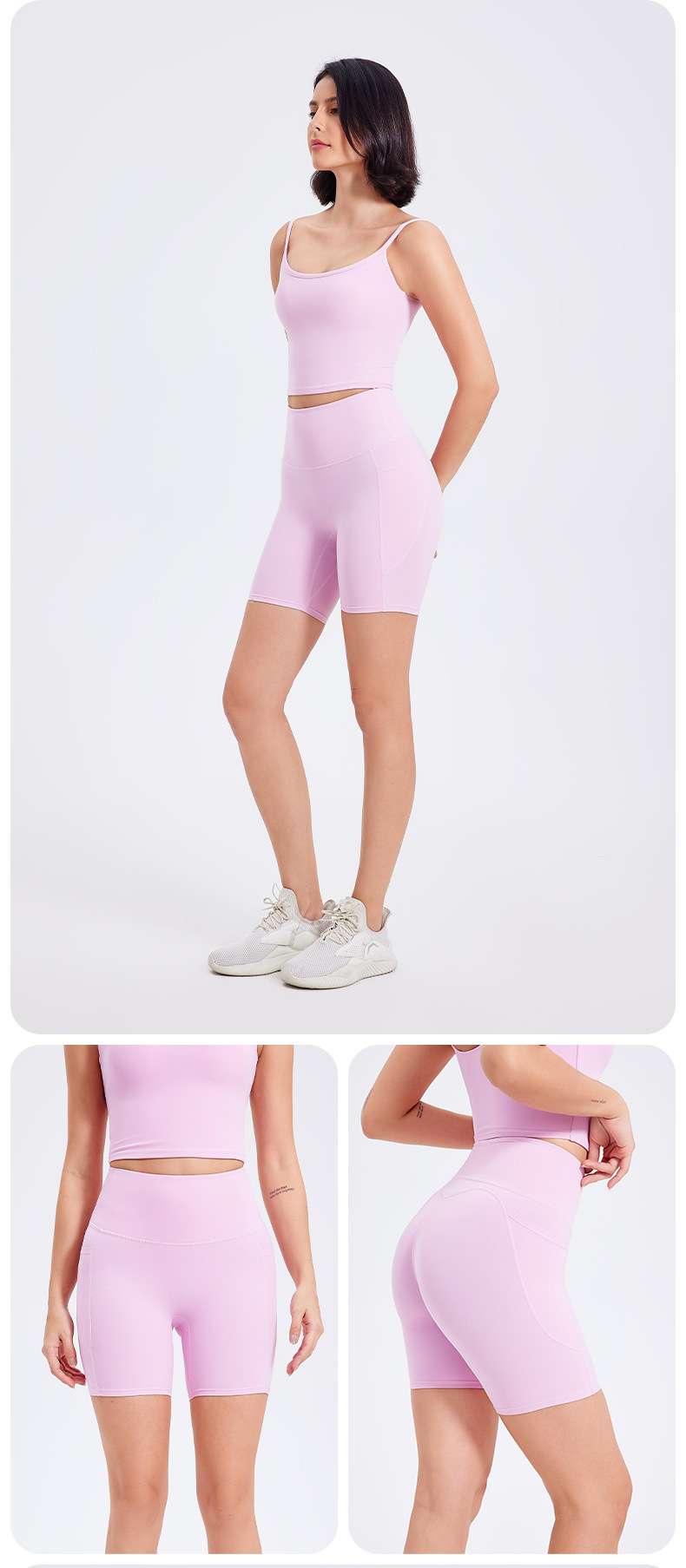 2024 new colors 2022 spring and summer new high waist shorts nude T-line yoga pants women's European and American peach hip lift three-point fitness pants