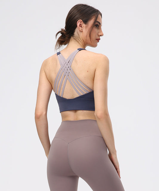 New yoga bra moisture wicking cross beauty back bra running sports fitness no steel ring sports underwear