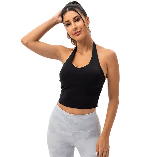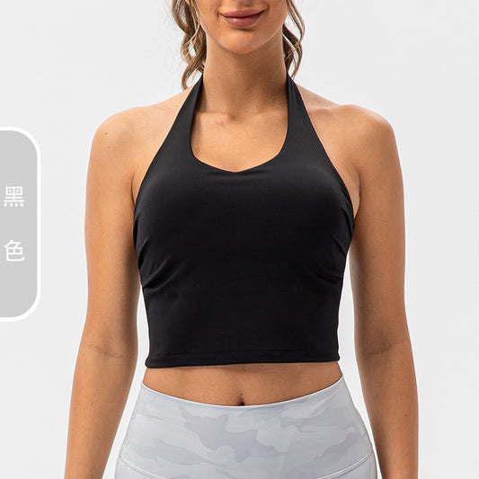 11/2023 Hanging neck sports underwear women with chest pad back yoga vest inside to wear sports fitness yoga clothing top