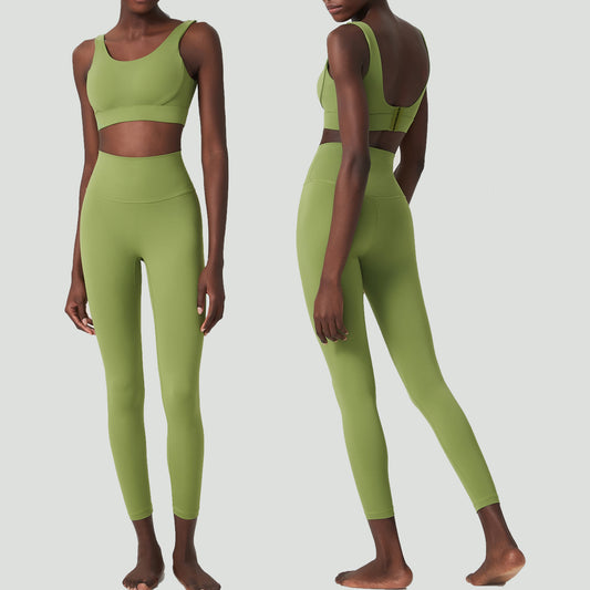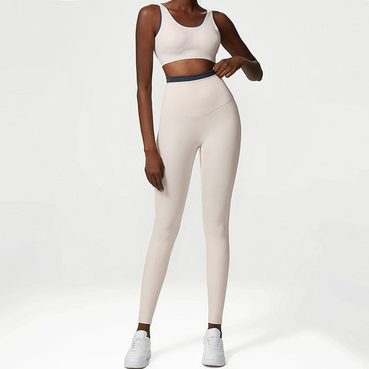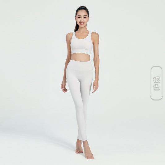 European and American simple body fitness yoga clothes women's comfortable nude sports vest quick-drying sweat-wicking running trousers suit