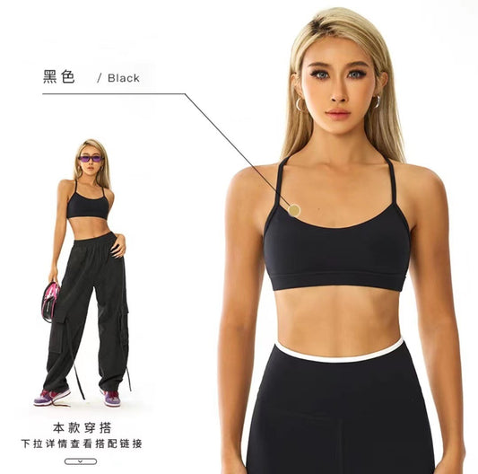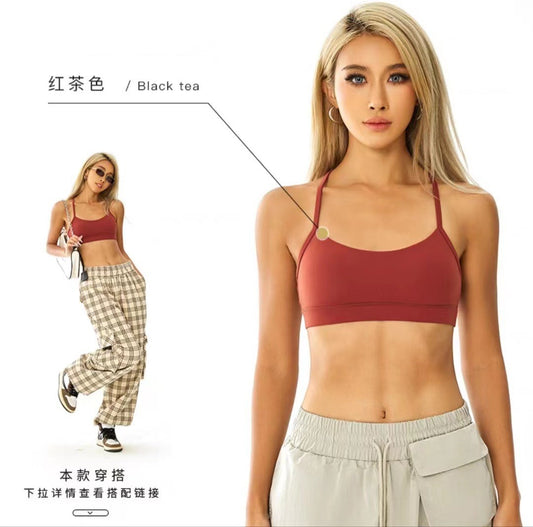 05/2024 update new color back hanging neck sling beautiful back bra shockproof sports underwear with chest pad yoga fitness vest