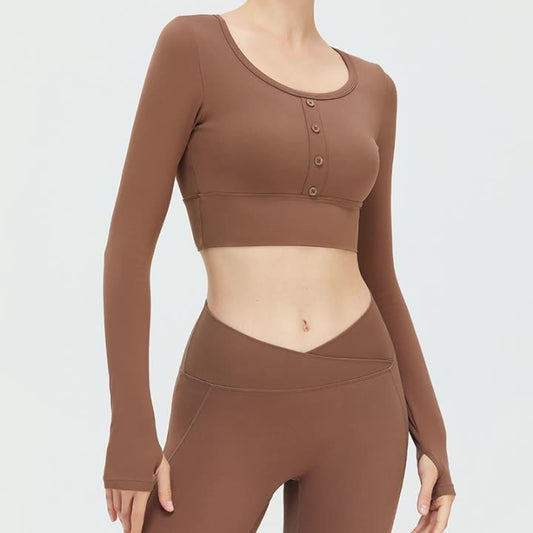 2024 Square neck tight height elastic lean yoga sports long sleeve female professional running speed dry fitness Pilates training top