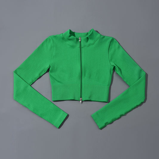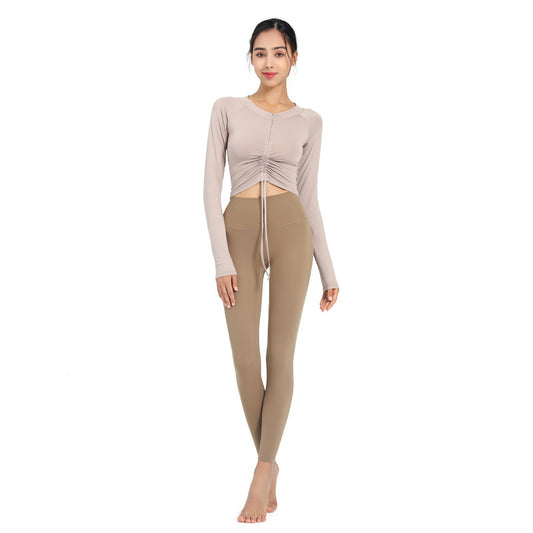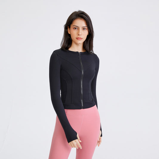 10/2023 Sports coat Women autumn winter nude slimming zipper yoga wear long sleeve outdoor running jump exercise fitness top