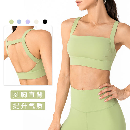 03/2024 Soft Yoga Vest with Chest Pad for Women Seamless Sports Back Beauty Underwear Vest Square Neck Suspender Yoga Wear Bra