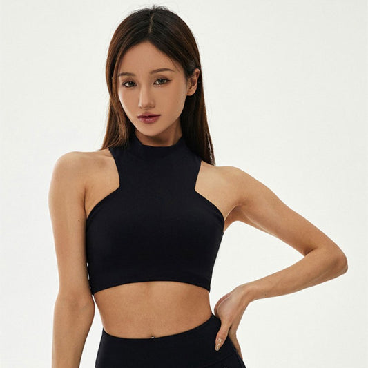 11/2023 Lycra high elastic shock-proof running underwear high collar fixed cup yoga wear bra vest quick-drying fitness top