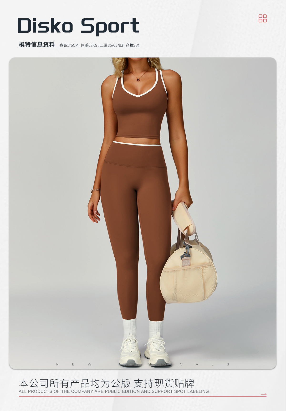 07/2025 Contrast color hemming sports suit women's tight beautiful back nude yoga suit sports outdoor fitness suit 9238
