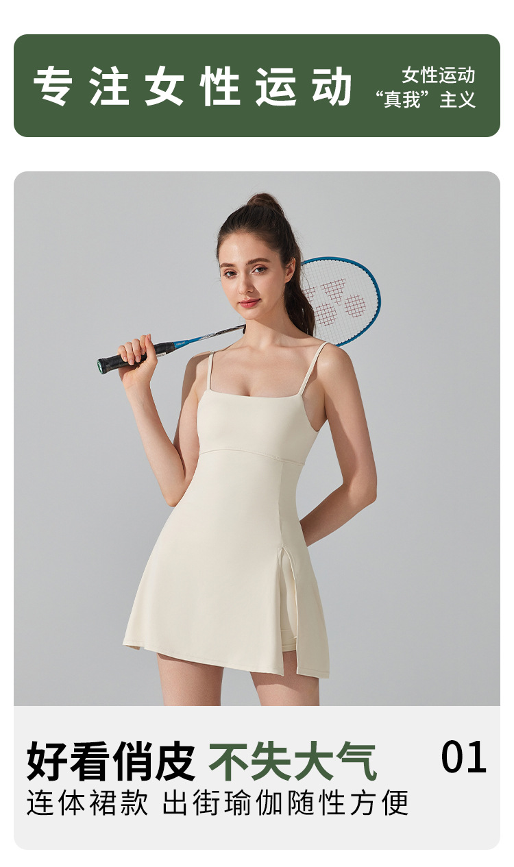 08/2024 Anti-exposure bottoming sports dress with chest pad breathable outdoor golf beautiful back sling yoga tennis skirt for women