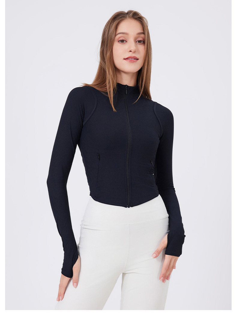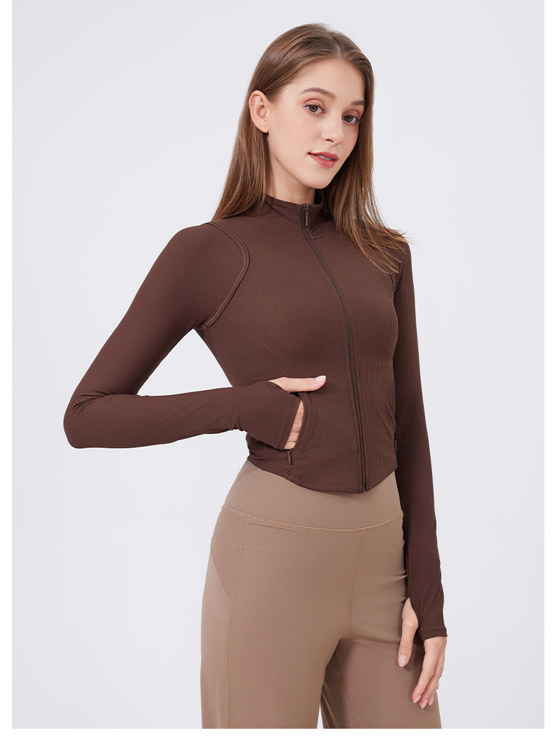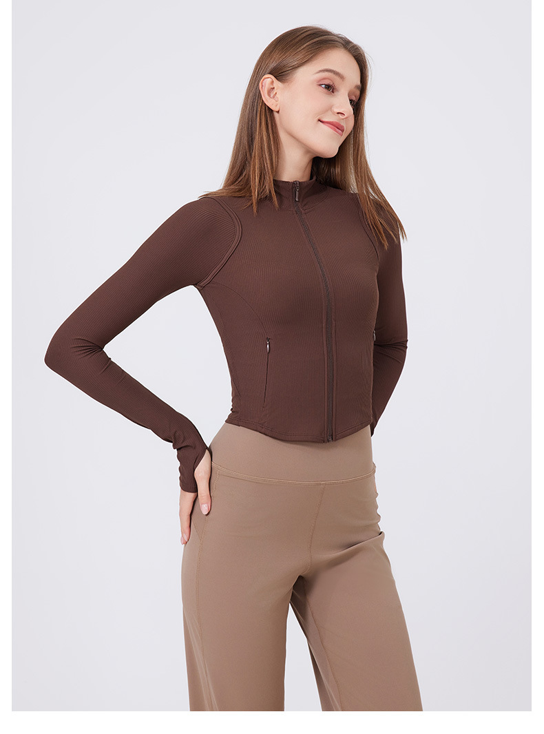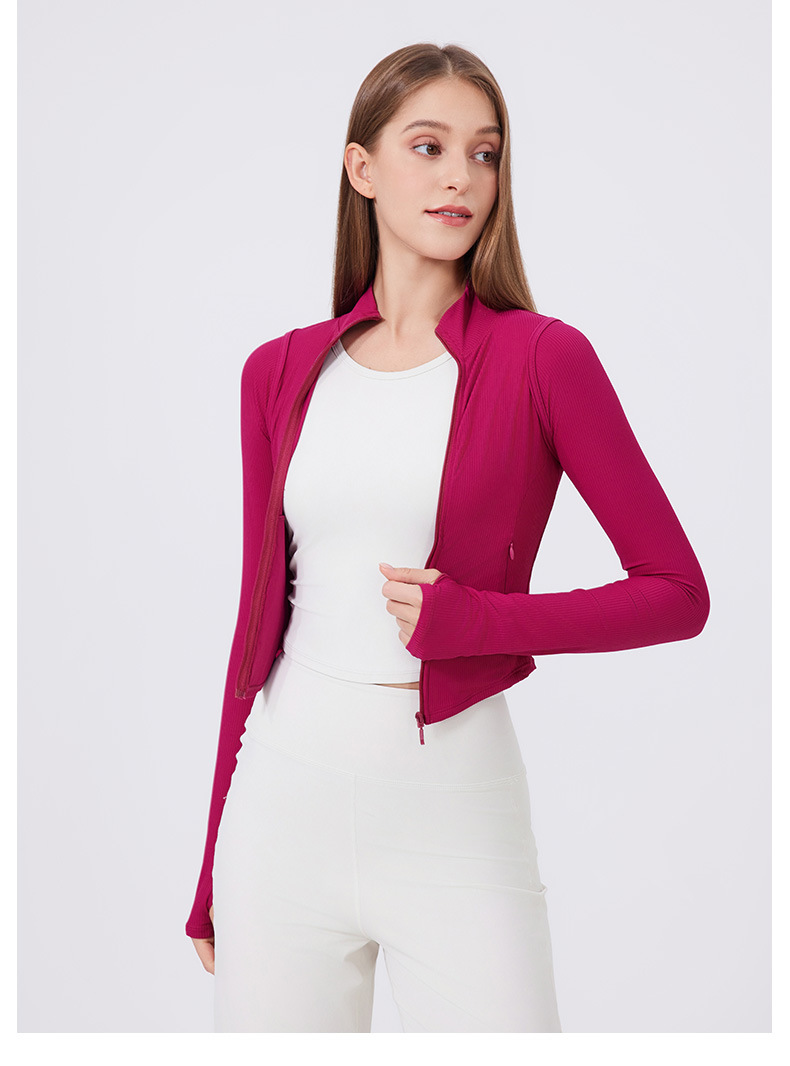 12/2024 Stand collar casual running outerwear yoga wear women's zipper slim sports jacket high elastic outdoor nude feeling fitness jacket