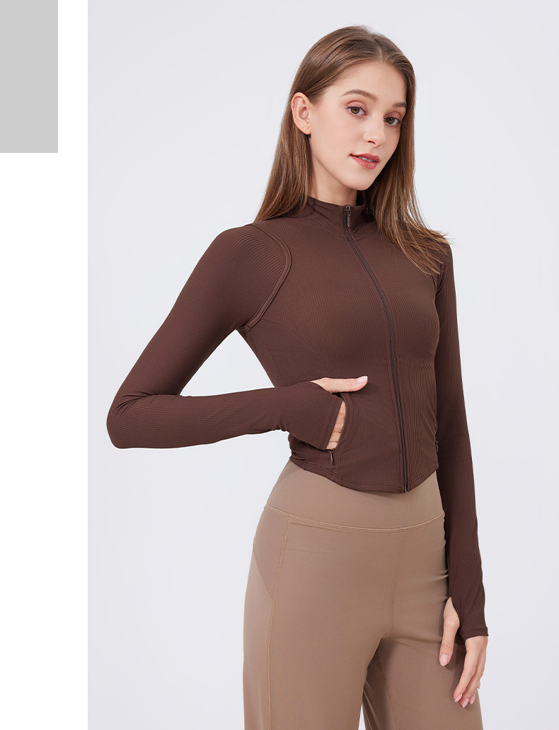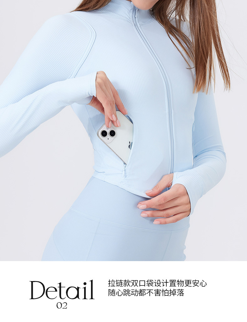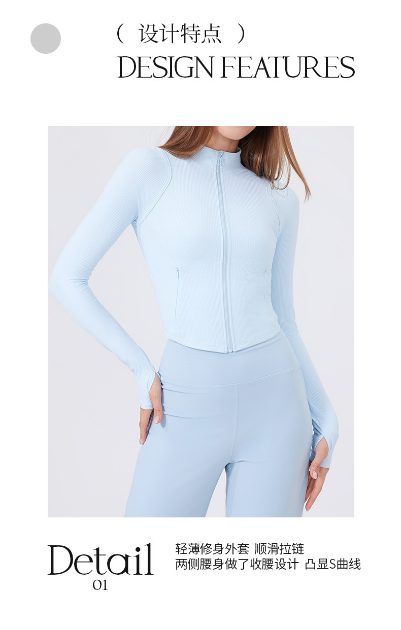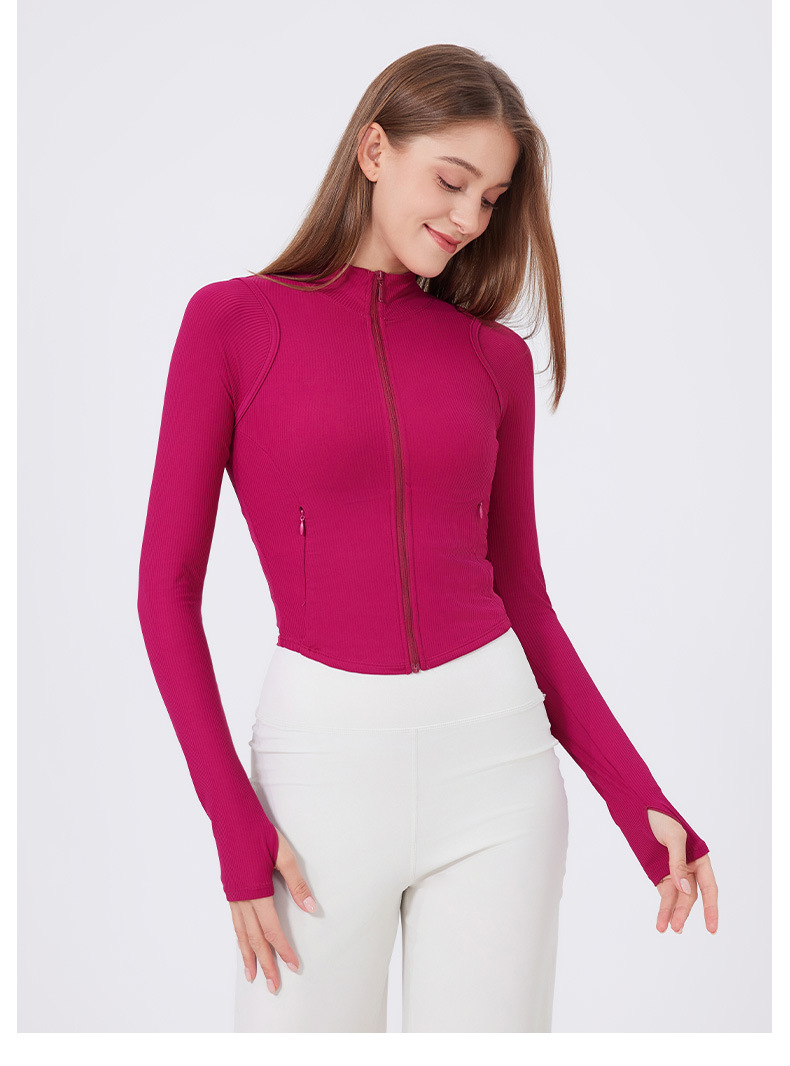 12/2024 Stand collar casual running outerwear yoga wear women's zipper slim sports jacket high elastic outdoor nude feeling fitness jacket