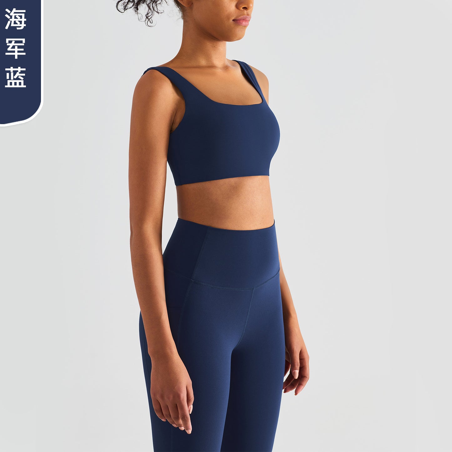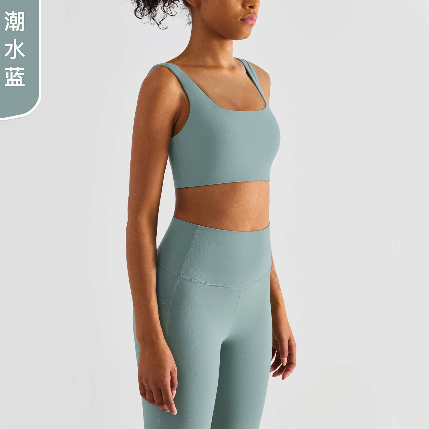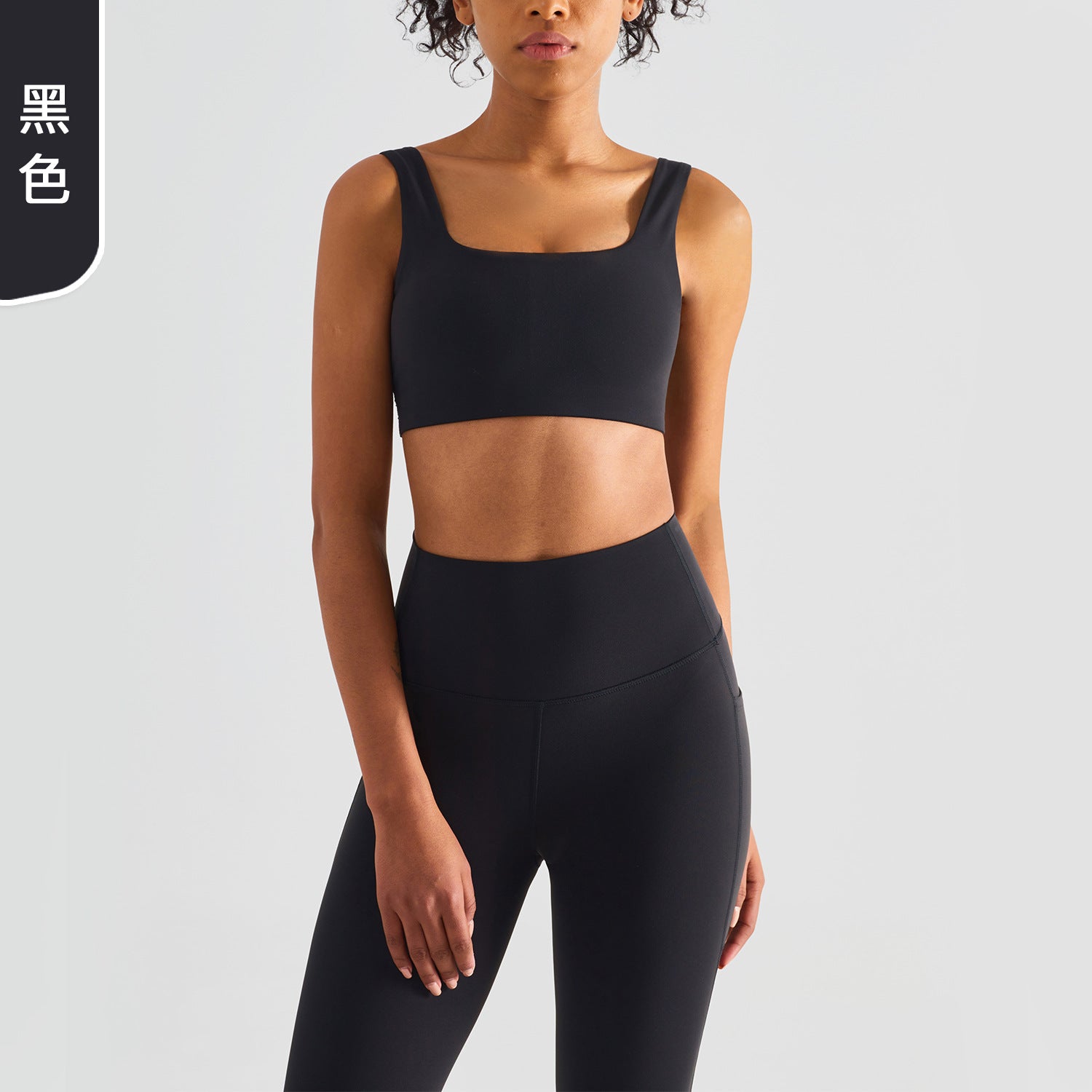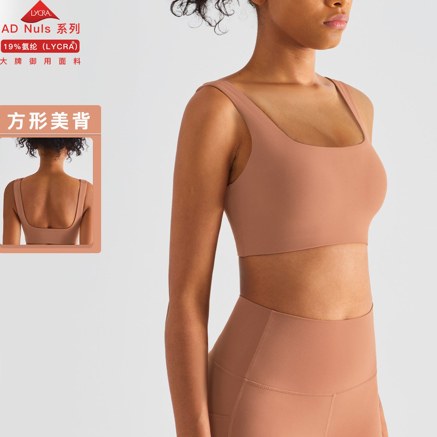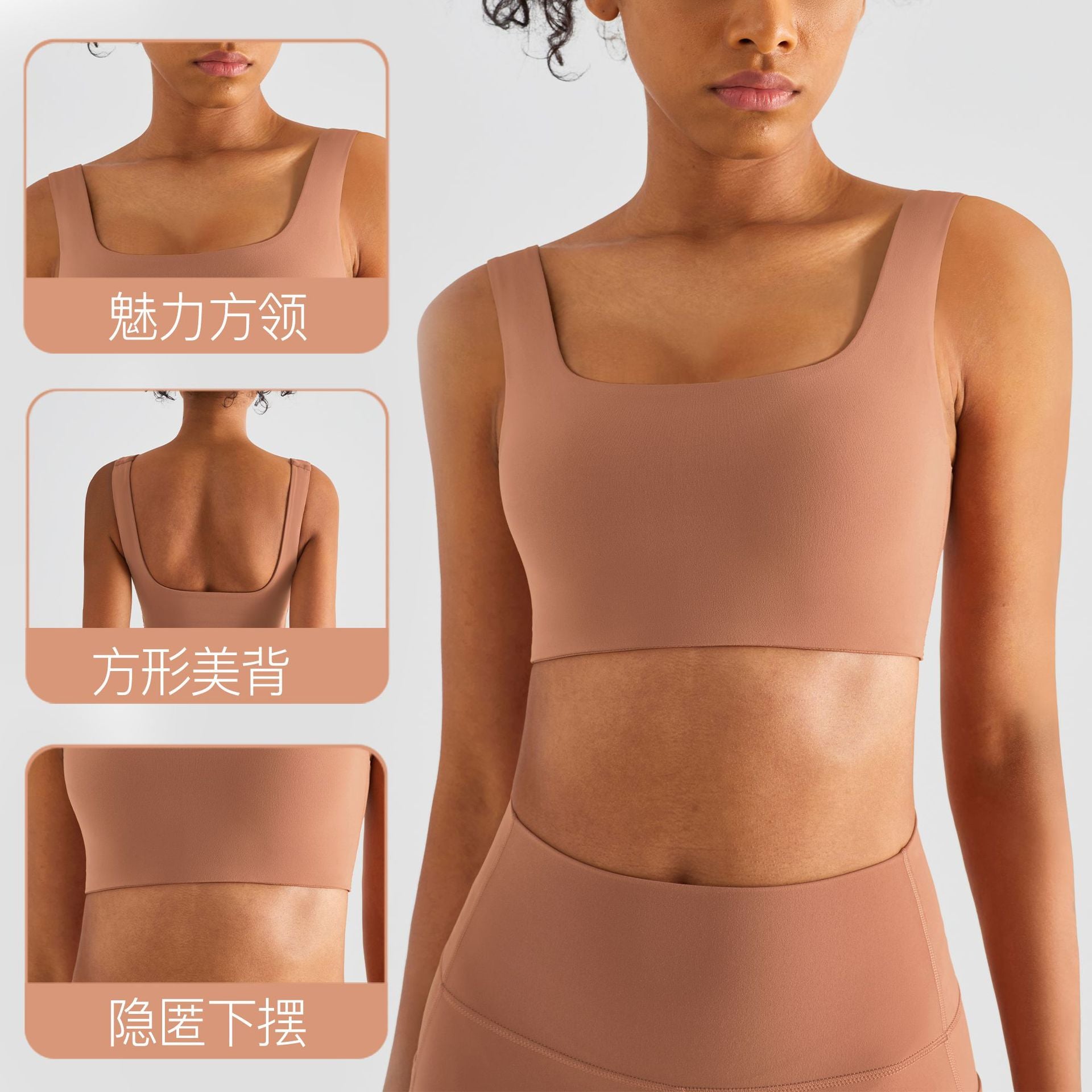 2022 cross-border new high-end Lycra square neck sports underwear women's European and American invisible hem brushed yoga vest