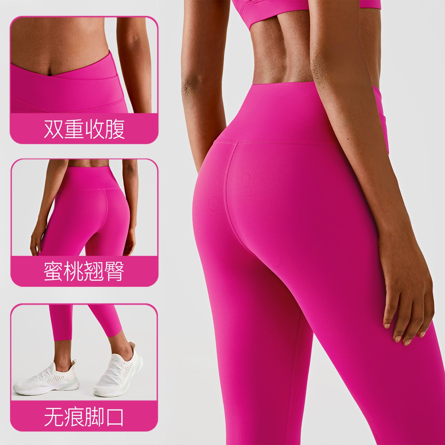 2022 new cross-border peach hip lift nude fitness pants cross waist and outer wear yoga tights