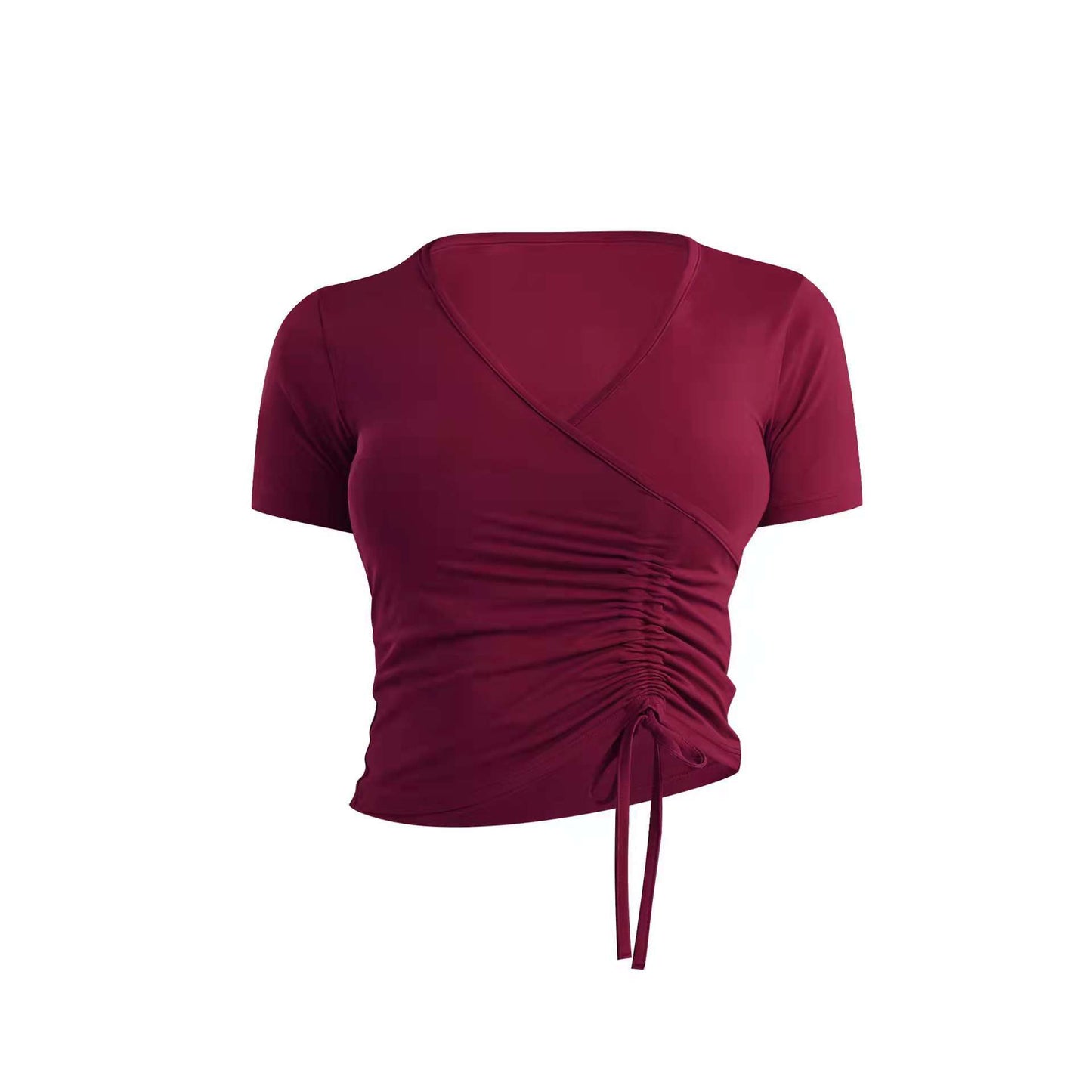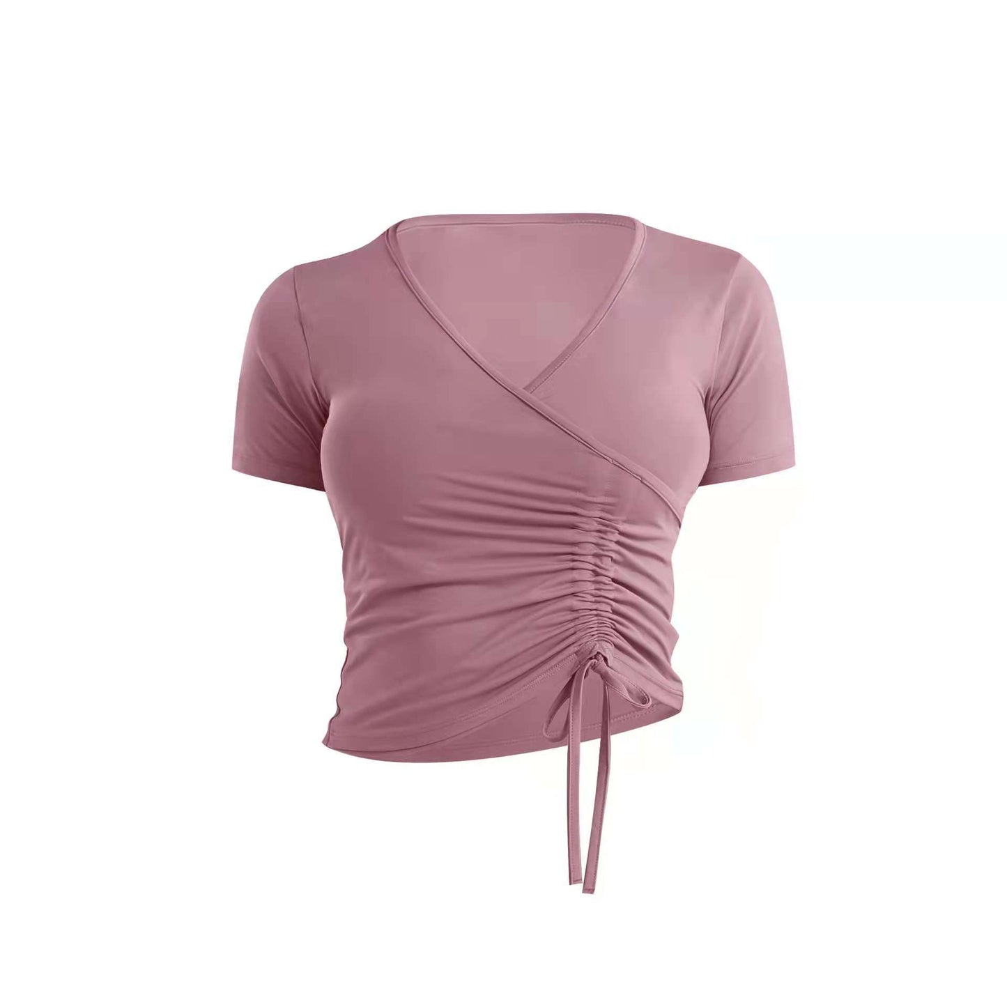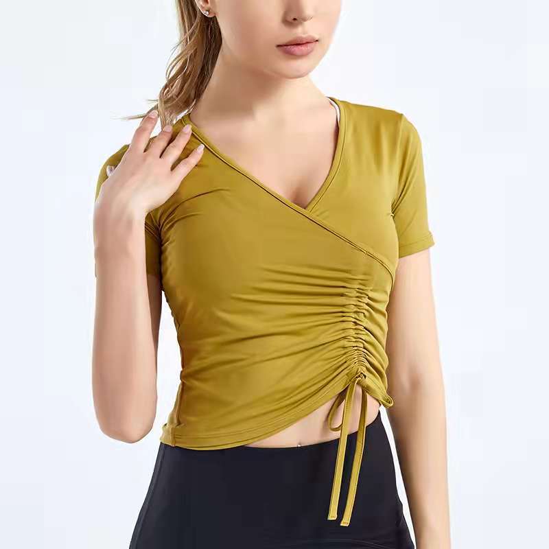 2022 new product drawstring V-neck sports short-sleeved T-shirt women slimming yoga clothes fitness running training quick-drying top