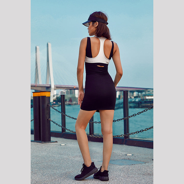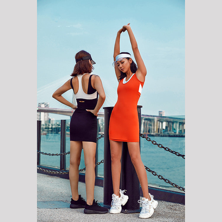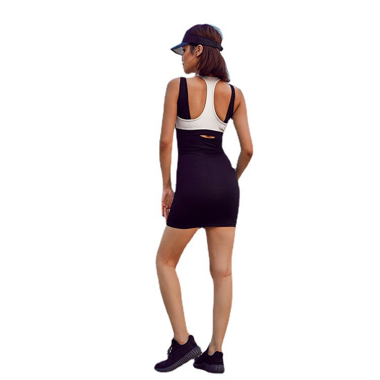 2022 spring and summer new sports dress with chest pads anti-light one-piece yoga clothes breathable quick-drying fitness clothes women