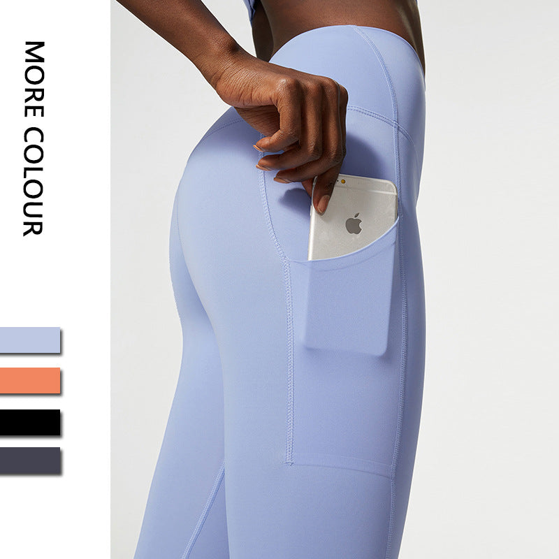 2022 spring new cross-border yoga pants women's anti-rolling fitness trousers side pocket sports tights