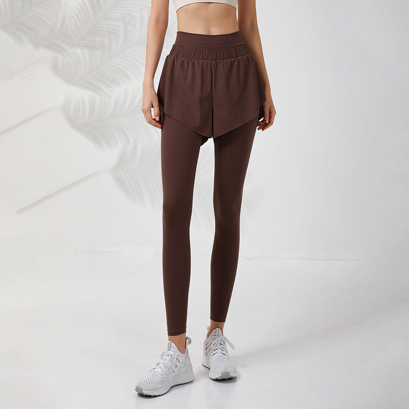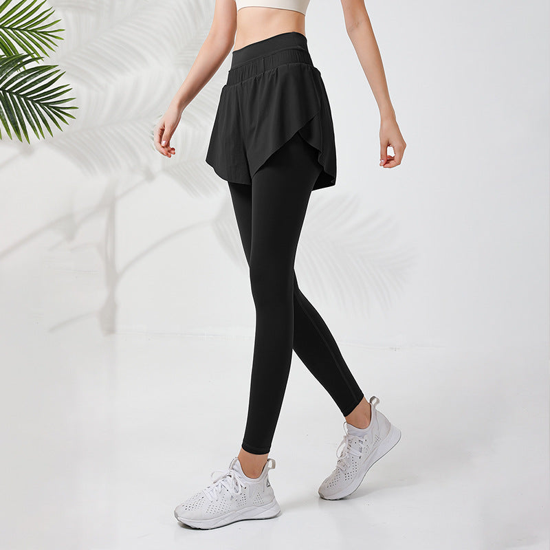 2023.08 Fake two-piece sports fitness pants women's outerwear quick-drying high-waisted belly-shrinking hip-lifting yoga pants nude seamless running hakama