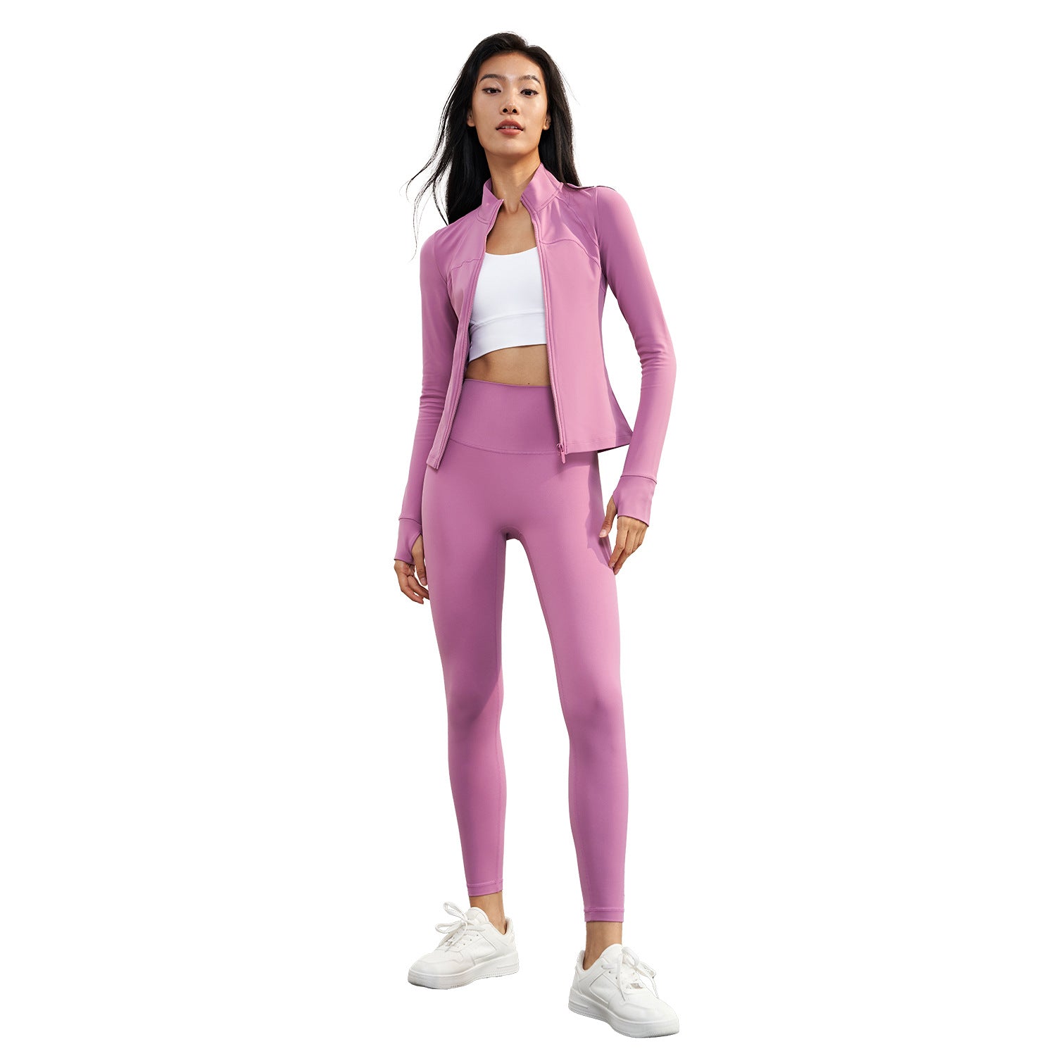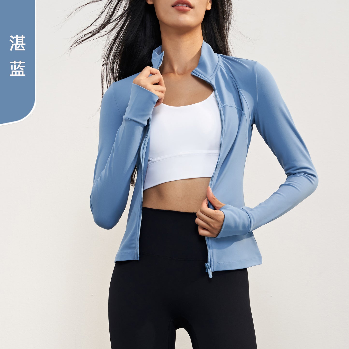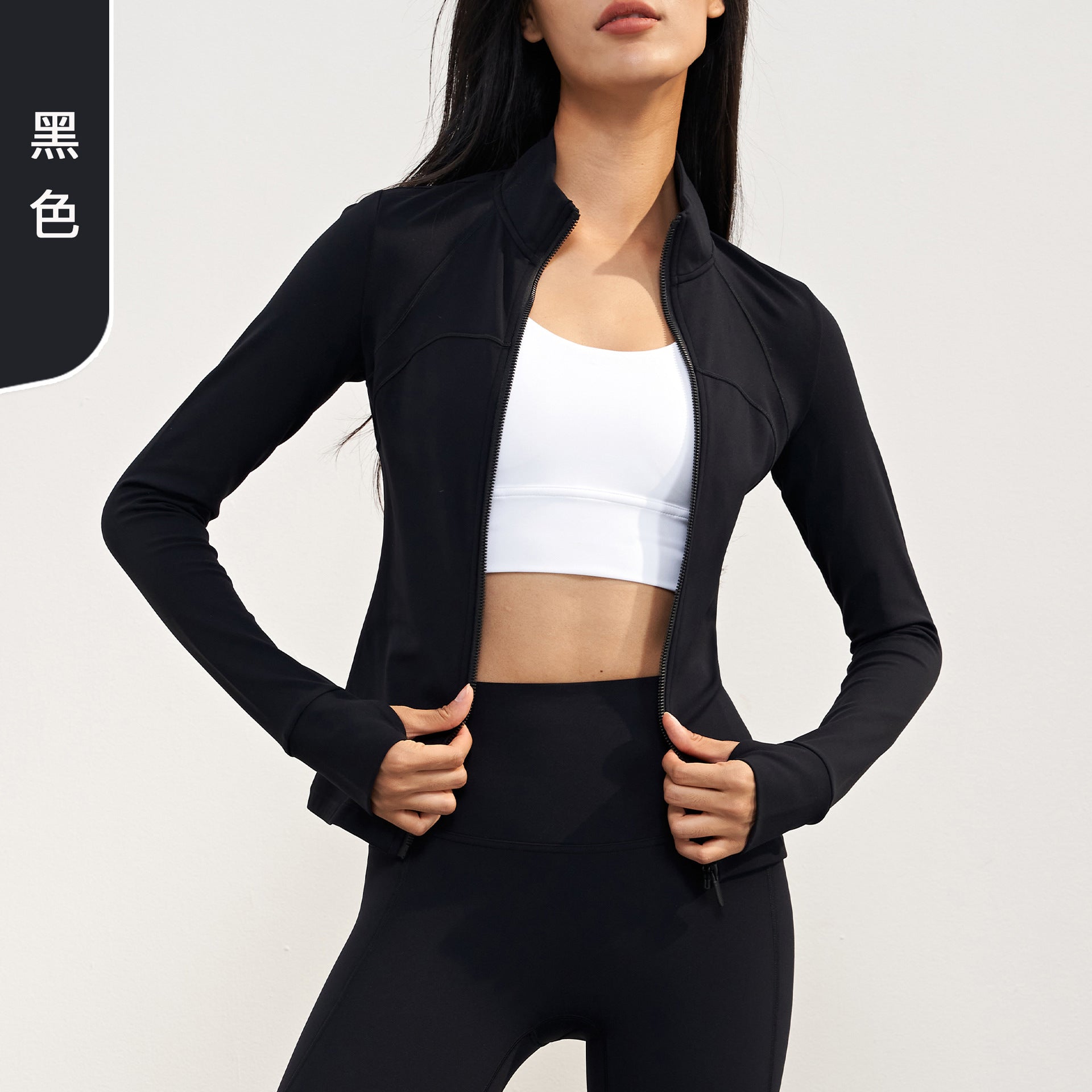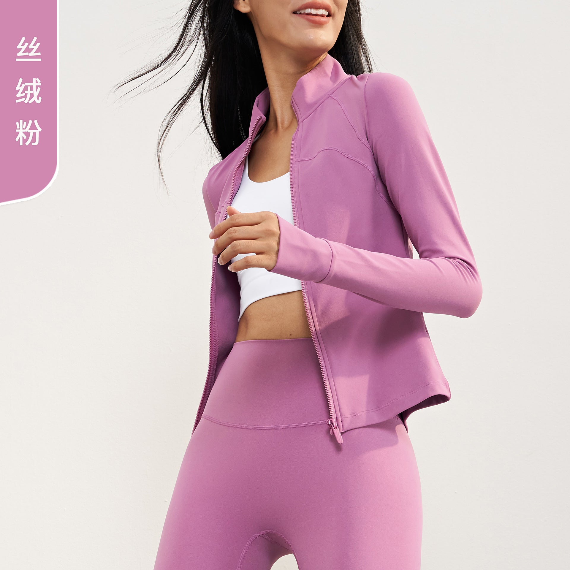 2023.09 Nuls thickened thin velvet windproof stand collar sports coat plus velvet slim yoga jacket finger cot sports top for women