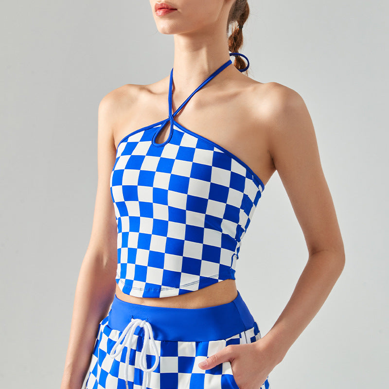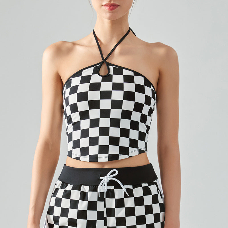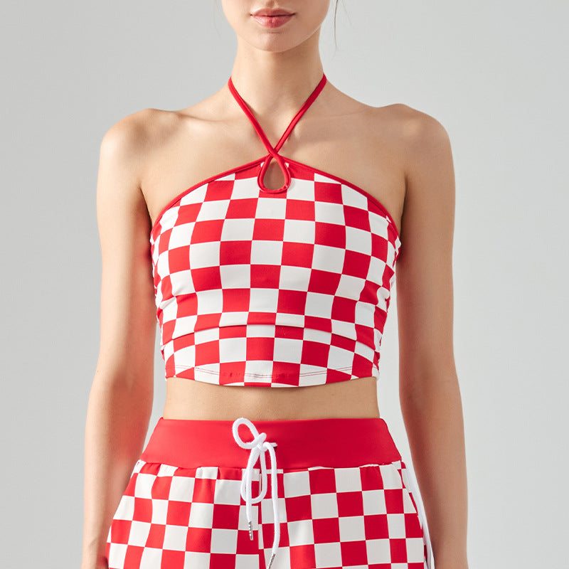 checkerboard yoga bra women's summer beauty vest vest fitness bra top suspenders sports bra underwear