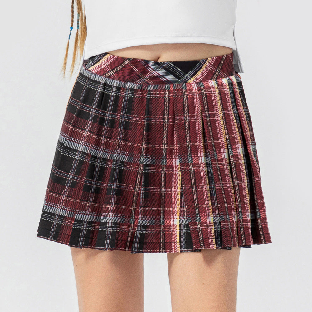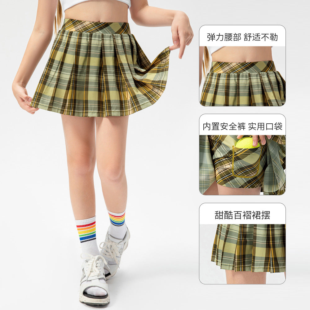 Children's clothing tennis skirt fake two-piece plaid pleated skirt girls sports skirt dance training culottes 23409